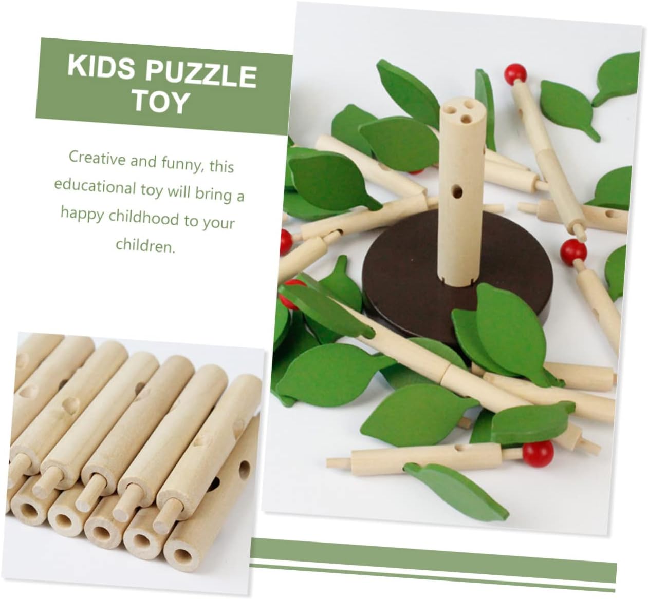 Copilul asamblează pomul pas cu pas, pornind de la trunchi și ramuri, până la adăugarea frunzelor și a merelor. Piesele sunt ușor de prins și se montează cu ușurință, fiind potrivite pentru cei mici.