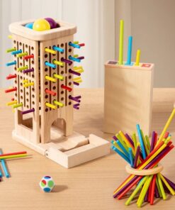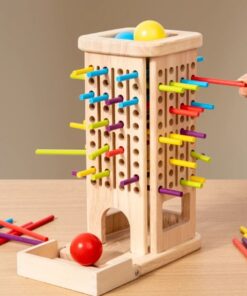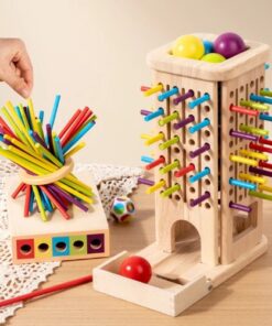 Jocul Montessori de echilibru cu bețe și bile este o jucărie educativă din lemn care stimulează gândirea logică, coordonarea și spiritul de echipă. Conceput pentru copii de la 3 ani în sus, jocul transformă învățarea într-o activitate distractivă de familie sau de grup.