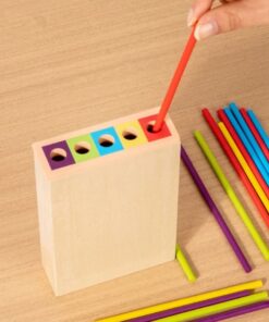 Joc de sortare pe culori – asociază bețele cu orificiile corespunzătoare.