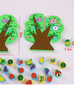 Pomul cu fructe este o jucarie ce antreneaza rabdarea si dexteritatea copiilor. Acestia sunt nevoiti sa potriveasca snurul inainte de a atasa cuburile, iar acest lucru le poate pune la incercare spiritul perseverent.