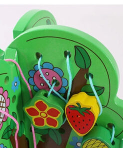 Copacul cu fructe din lemn de snuruit este o jucarie cu siret, ce contine mici cubulete cu forme de fructe, frunze si insecte viu colorate. Toate aceste cubulete pot fi adaugate in copacel cu ajutorul snuruletului special.