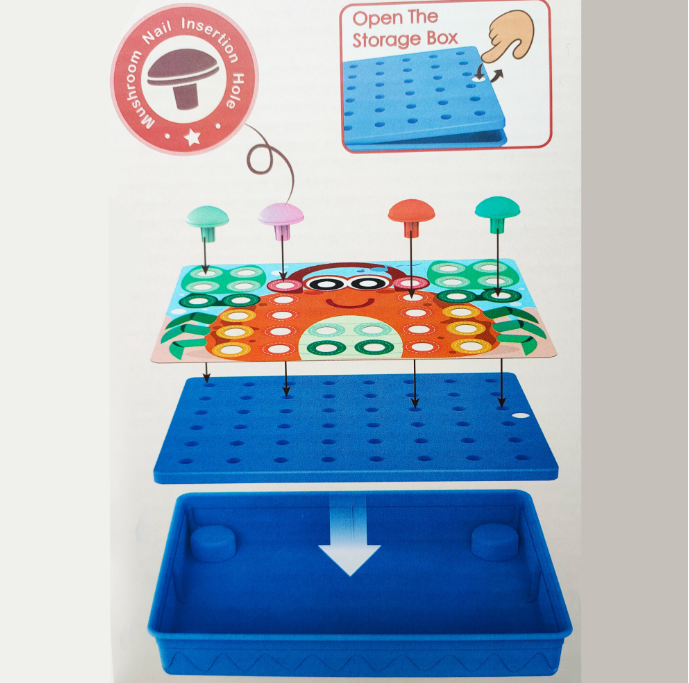 - Jocul stimuleaza dezvoltarea coordonarii ochi-mana, iar copii se vor amuza inventand propriile modele de mozaic