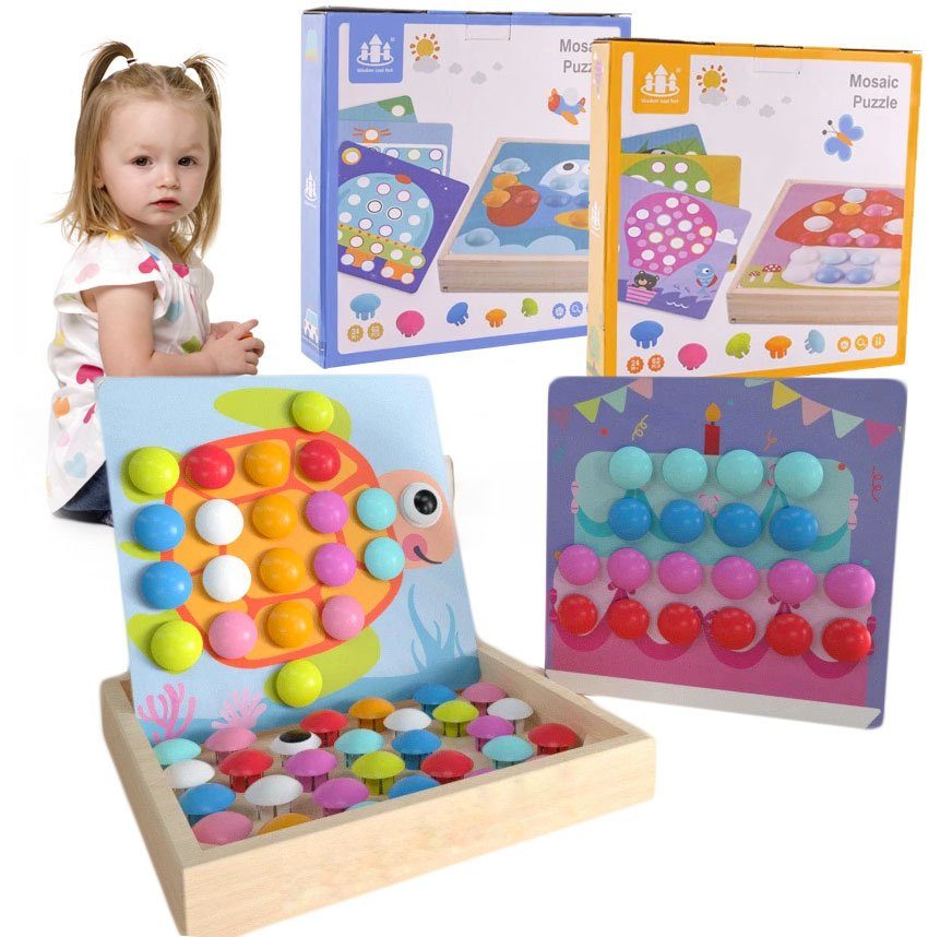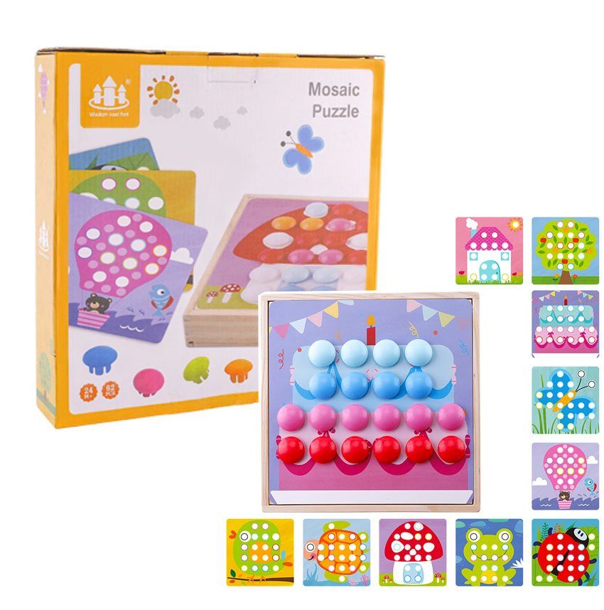 - Jocul stimuleaza dezvoltarea coordonarii ochi-mana, iar copii se vor amuza inventand propriile modele de mozaic
