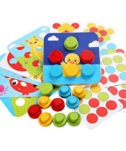 - 6 planse cu modele coloristice, pe care copii le pot urma prin asezarea corecta a butonilor;