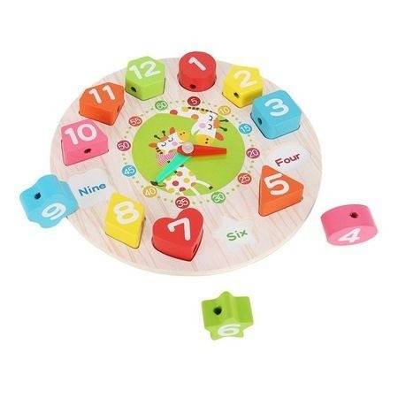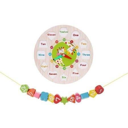 Joc multifunctional, tip puzzle incastru, din lemn – Ceas si joc de snuruit