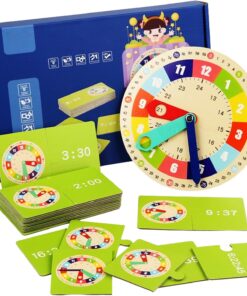 Acest joc educativ multifuncțional este perfect pentru copiii de la 3 ani în sus care doresc să învețe despre ceasul analogic și digital într-un mod interactiv și distractiv. Setul include un ceas din lemn colorat, cu ace mobile și cartonase puzzle pentru asocierea orelor. Este ideal pentru dezvoltarea abilităților cognitive, îmbunătățirea coordonării mână-ochi și înțelegerea conceptului de timp.