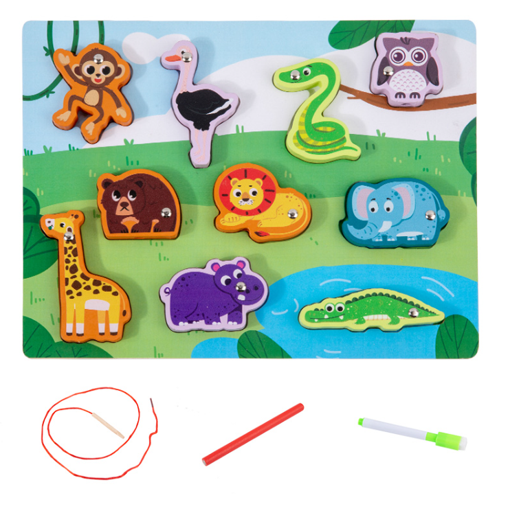Puzzle magnetic, joc educativ de pescuit din lemn – Animale Salbatice
