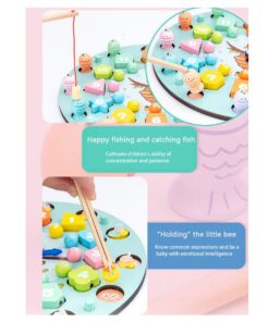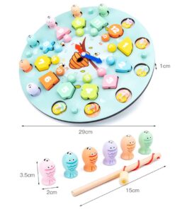 Pescuit magnetic – copiii folosesc undița magnetică pentru a prinde peștișorii colorați, un exercițiu distractiv pentru coordonare și concentrare.