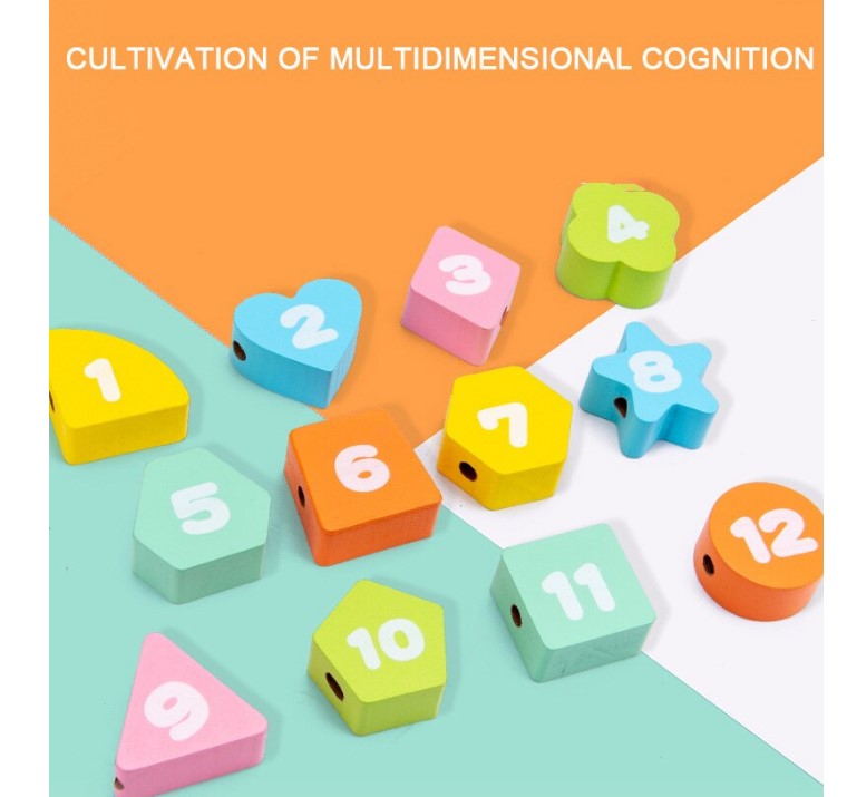 12 piese numerotate 1–12, în forme geometrice diferite (inimă, stea, triunghi, pentagon, etc.)