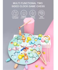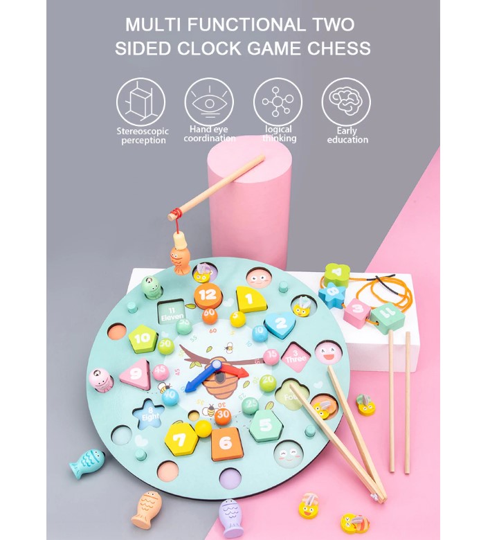 Jocul multifuncțional de tip Montessori, „Motricitate și ceas”, este o jucărie educativă completă destinată copiilor de la 3 ani. Conceput pentru a stimula curiozitatea și dezvoltarea cognitivă, acest joc îi ajută pe cei mici să învețe ceasul, să recunoască formele geometrice, culorile și numerele, dar și să își dezvolte coordonarea mână-ochi și motricitatea fină.