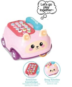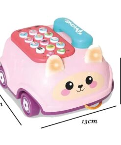 Telefonul are butoane colorate cu animale, cifre și simboluri muzicale, fiecare declanșând sunete, melodii sau efecte luminoase atractive. Copilul învață prin joacă să recunoască animalele, sunetele și culorile, dezvoltând în același timp coordonarea mână–ochi.