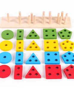 Joc sortator de forme geometrice pe 5 coloane, joc educativ din lemn