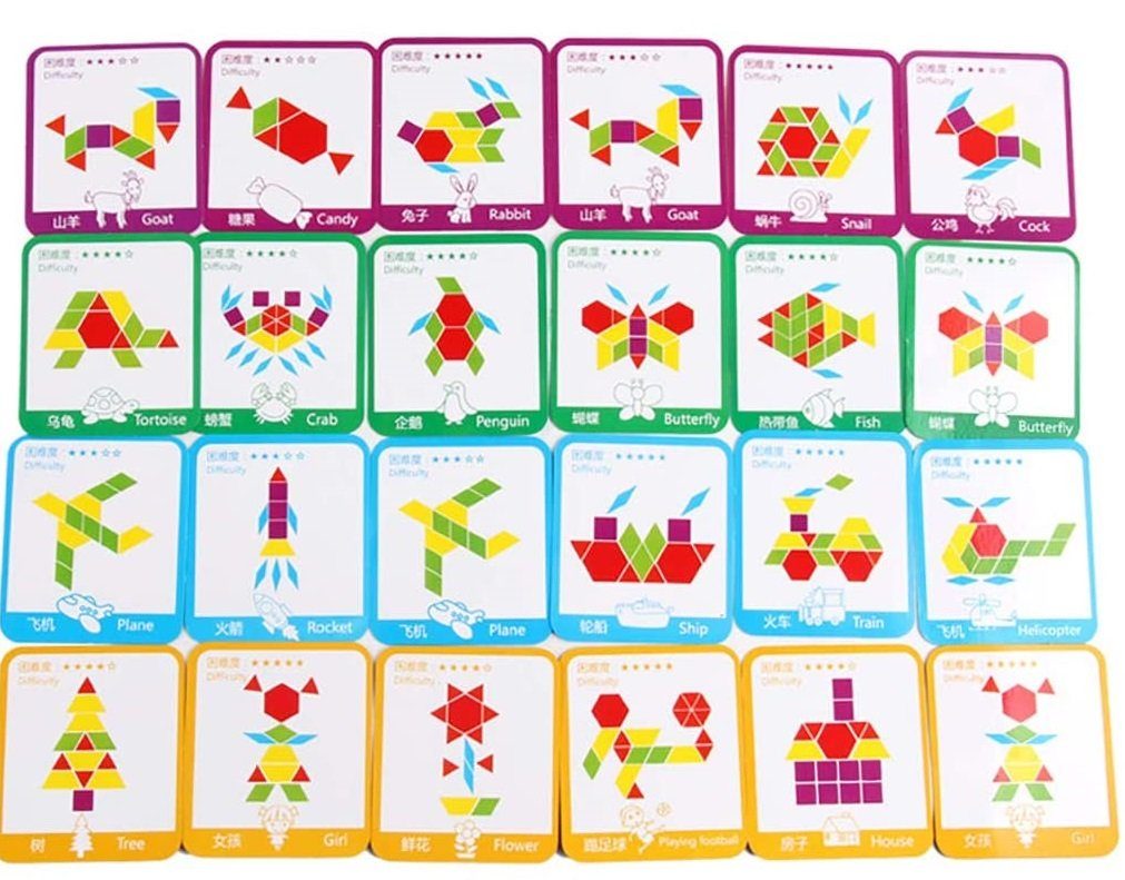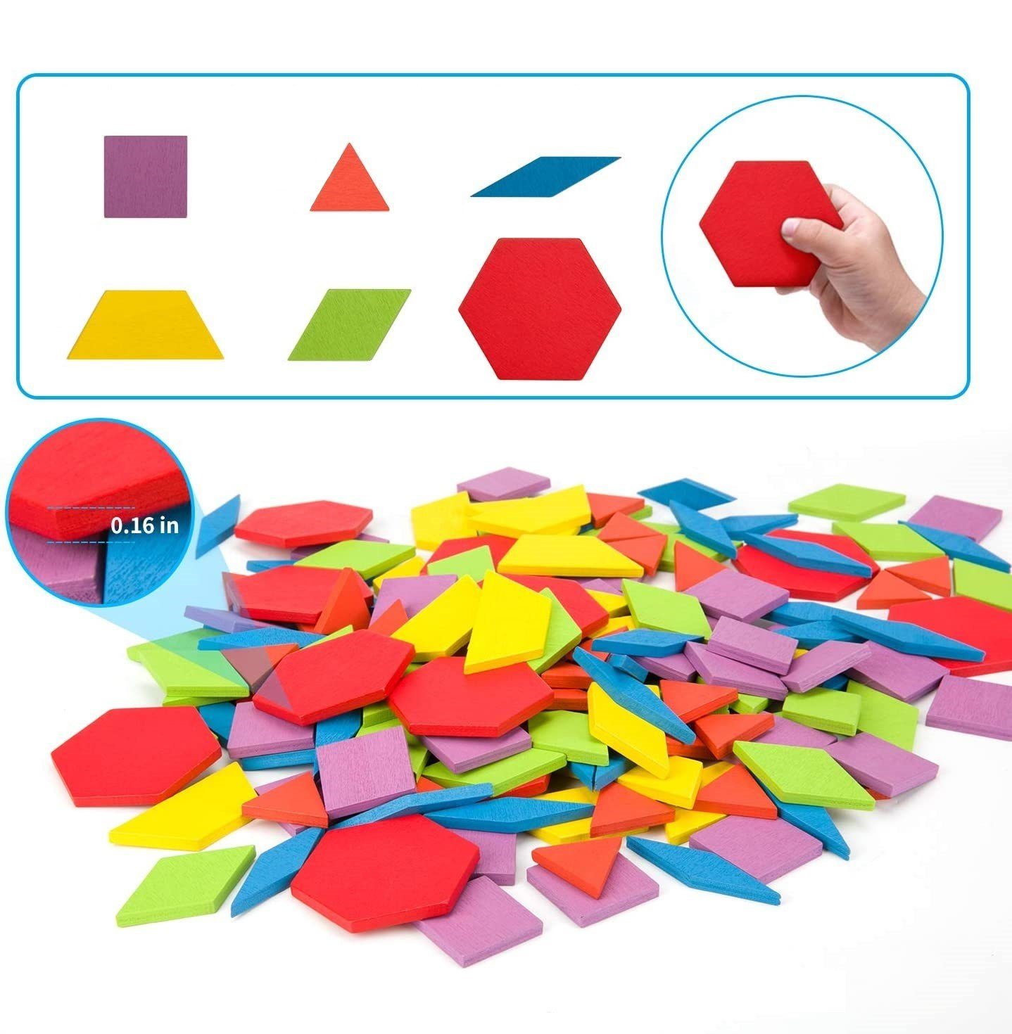 Puzzle educativ cu 155 piese din lemn, Tangram, 3 ani