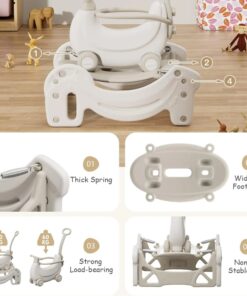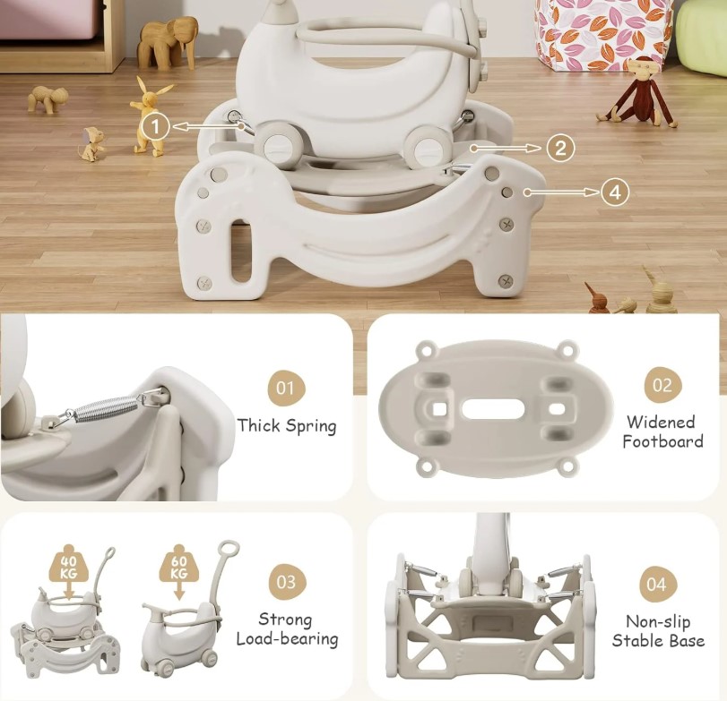 - Această jucărie multifuncțională 5 în 1 este proiectată pentru a oferi stabilitate și siguranță, având o capacitate de susținere de până la 60 kg( placa de echilibru). Baza sa robustă, prevăzută cu suprafață antiderapantă și arcuri rezistente, asigură o utilizare sigură atât în modul de balansoar, cât și în cel de trambulină, menținând echilibrul și oferind suport optim pentru cei mici.