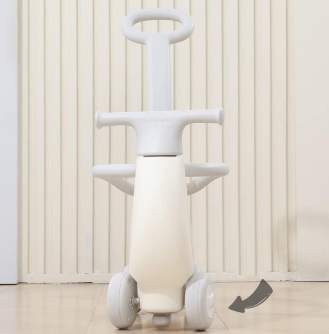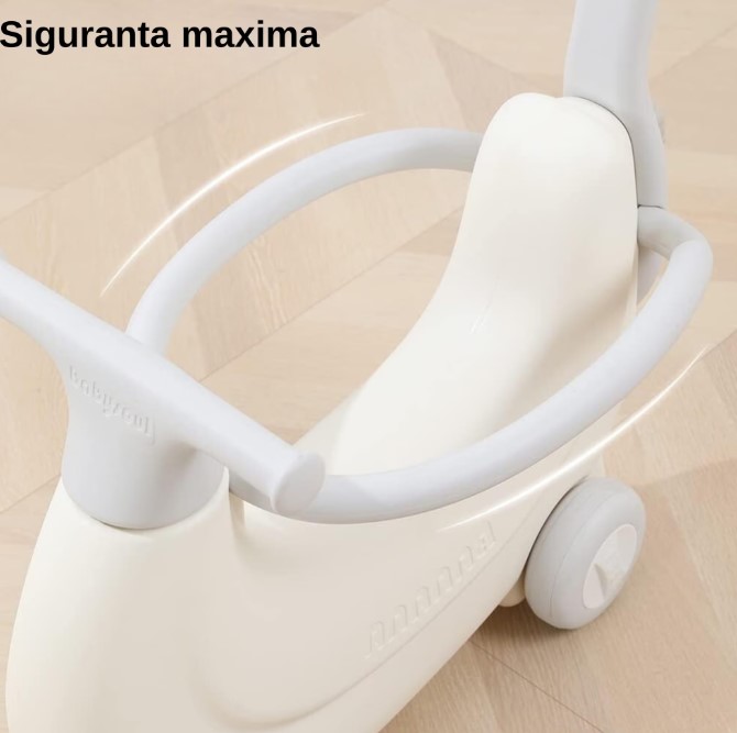 - Trotinetă pentru copii – poate fi folosită ca un vehicul de împins, ajutând la dezvoltarea coordonării și echilibrului.