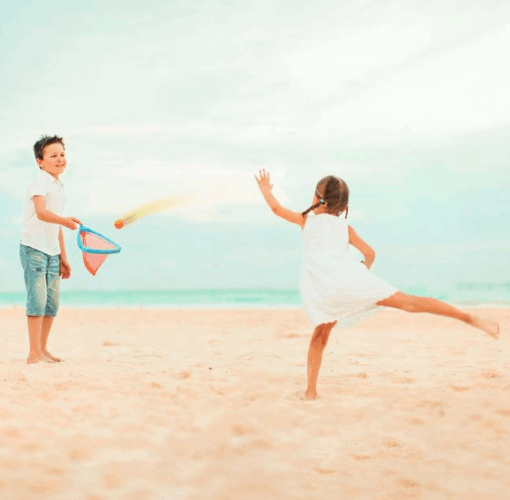 Prinde mingea. Setul include 2 rachete si 2 mingi. Așezați cauciucul pe cadrul rachetei. Țintește, întinde și prinde mingea în plasă