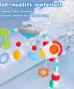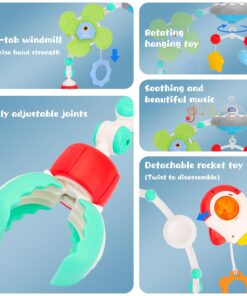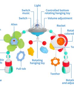 Arcada ajustabilă și pliabilă pentru bebeluși este o jucărie interactivă concepută pentru a stimula dezvoltarea senzorială și coordonarea bebelușului încă din primele luni de viață. Cu o tematică veselă inspirată din spațiu – rachetă, OZN, extratereștri și stele – această arcadă transformă timpul petrecut în cărucior, pătuț sau scoică într-o experiență plină de culoare și muzică.