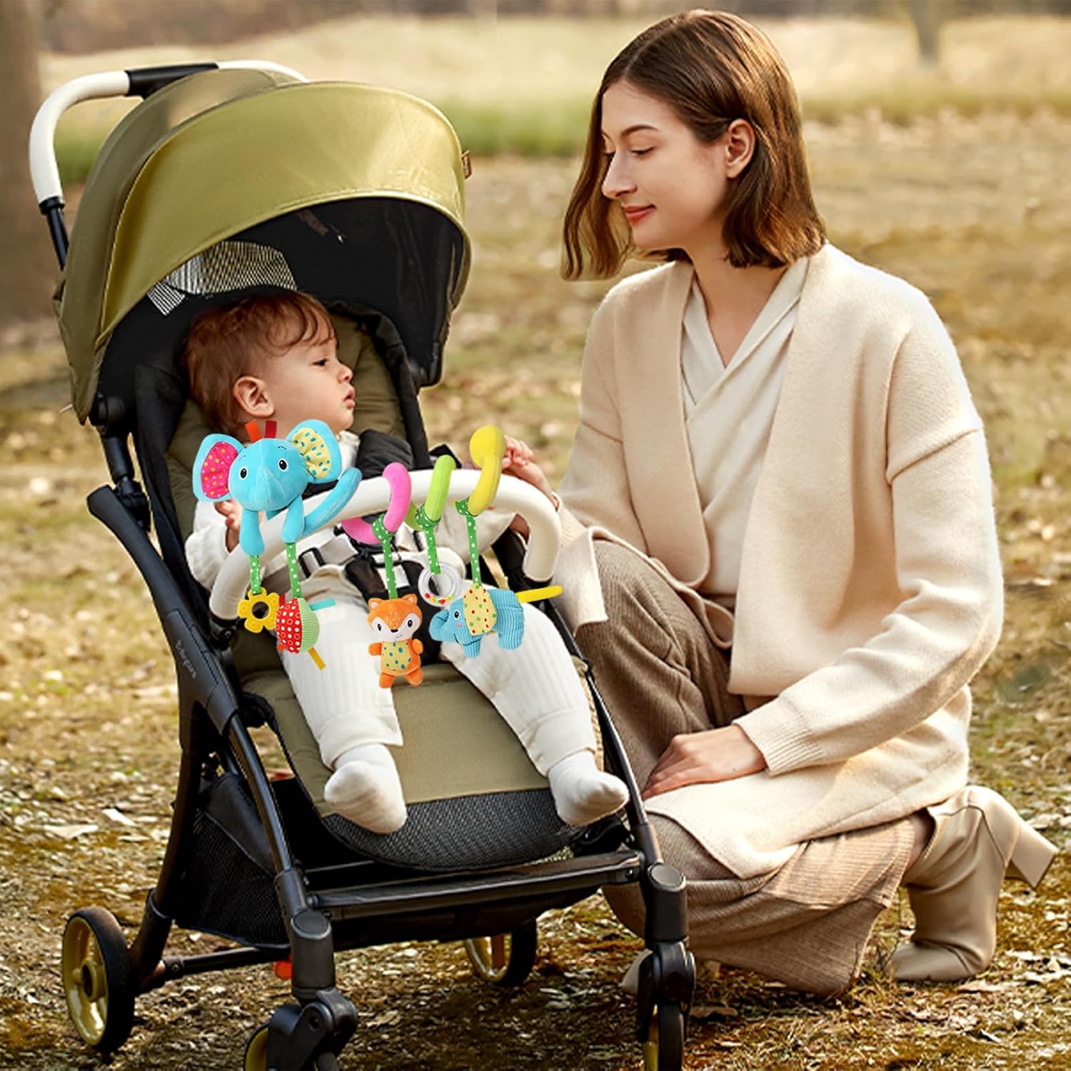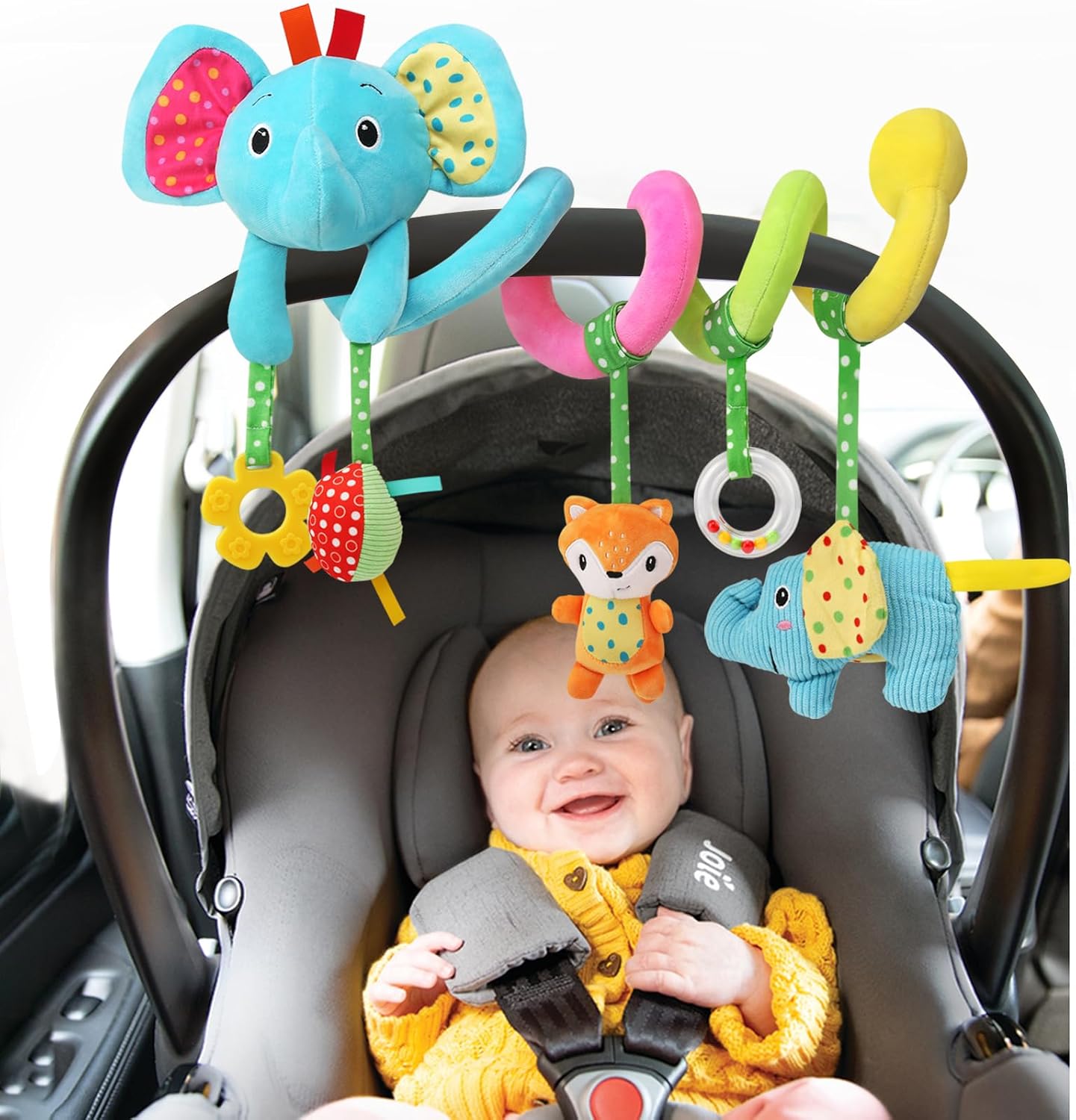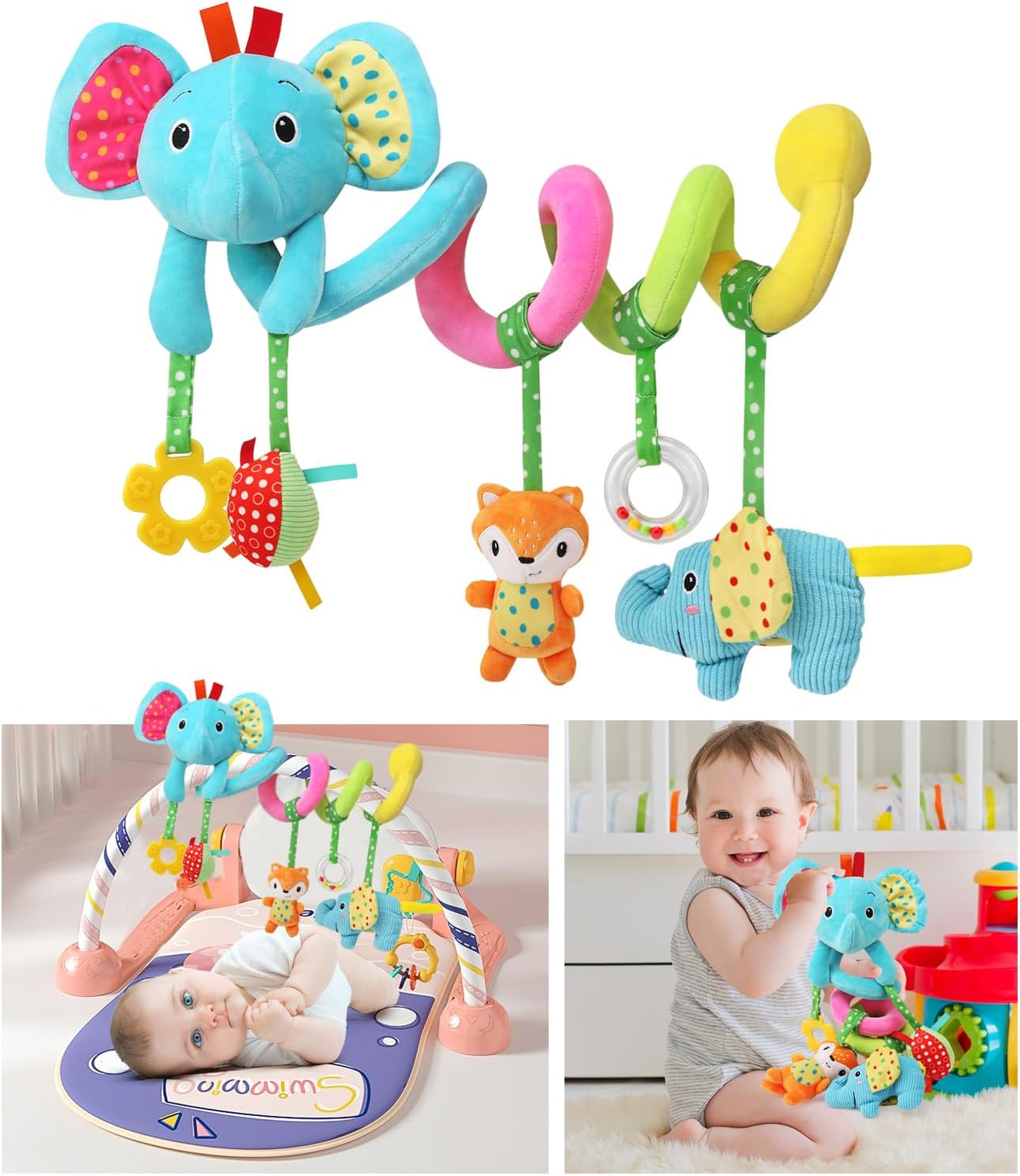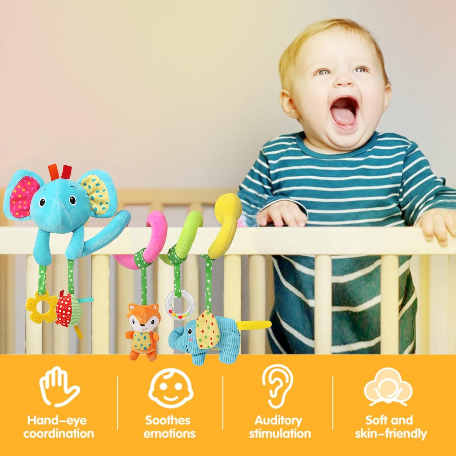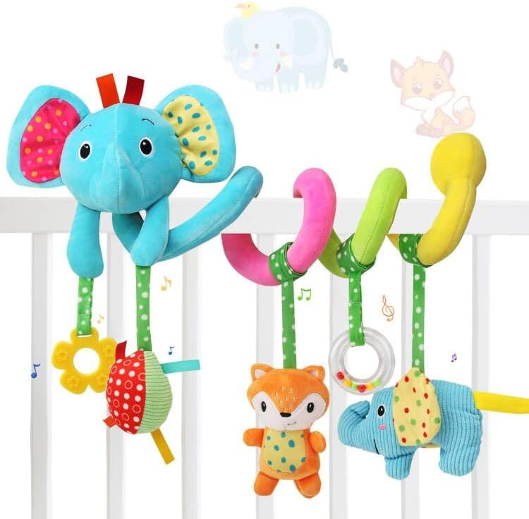 - Jucării Suspendate: Acesta vine cu trei jucării suspendate, inclusiv un elefant moale, un ursuleț cu sunet și o jucărie pentru dentiție, care contribuie la dezvoltarea coordonării mână-ochi și oferă distracție pe termen lung.