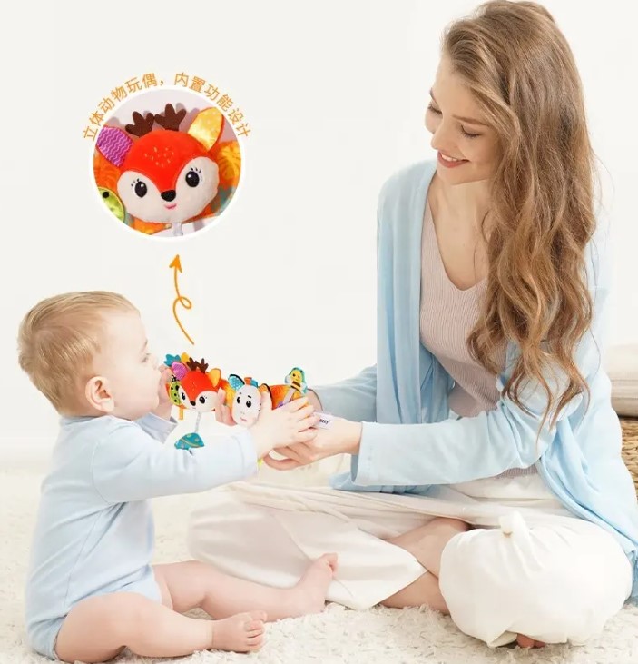 ✔ Sunete captivante – Clopoței și elemente foșnitoare care dezvoltă percepția auditivă și răspunsul la stimuli sonori.