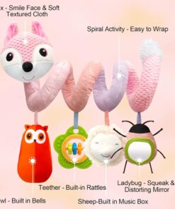 Jucărie spiralată – Se înfășoară ușor în jurul barelor de la pătuț sau cărucior, fiind ușor de montat și îndepărtat.