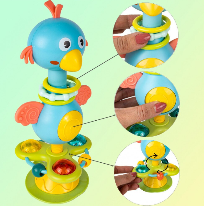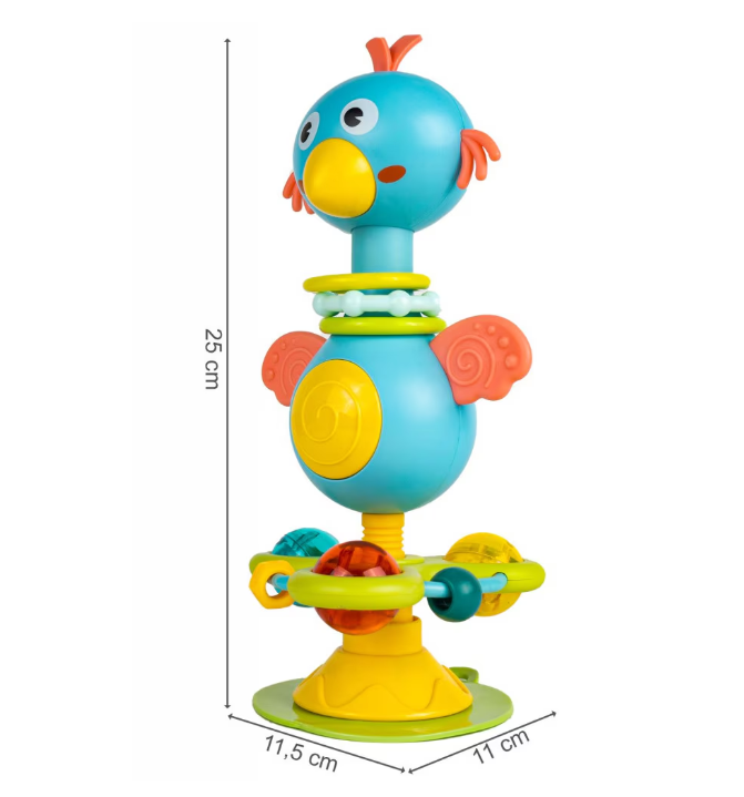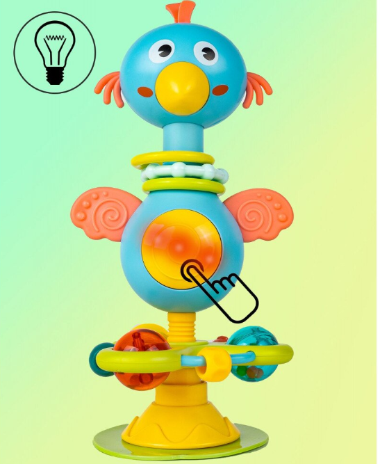 Aceasta jucarie senzoriala este perfecta pentru a fi lipita pe scaunul de masa a bebelusului tau. Ea este o jucarie grozava pentru copiii care tocmai invata sa exploreze lumea.