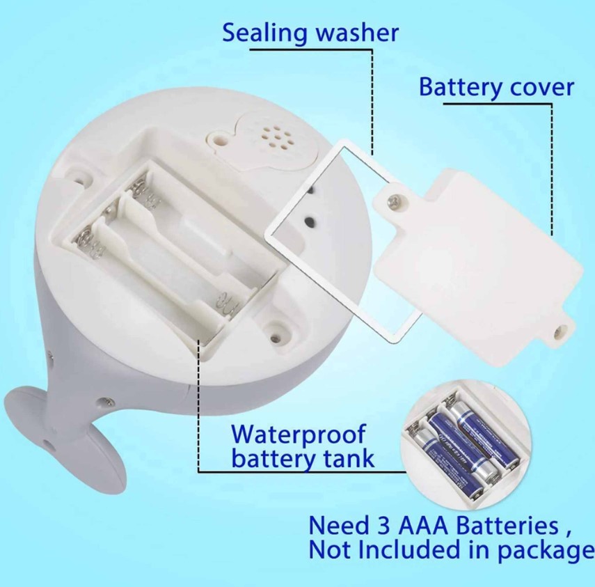 - Ușor de utilizat: Nu necesită butoane de pornire/oprire – pur și simplu puneți balena în apă și aceasta va începe să stropească și să lumineze.