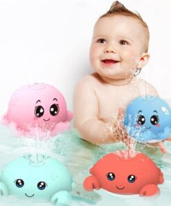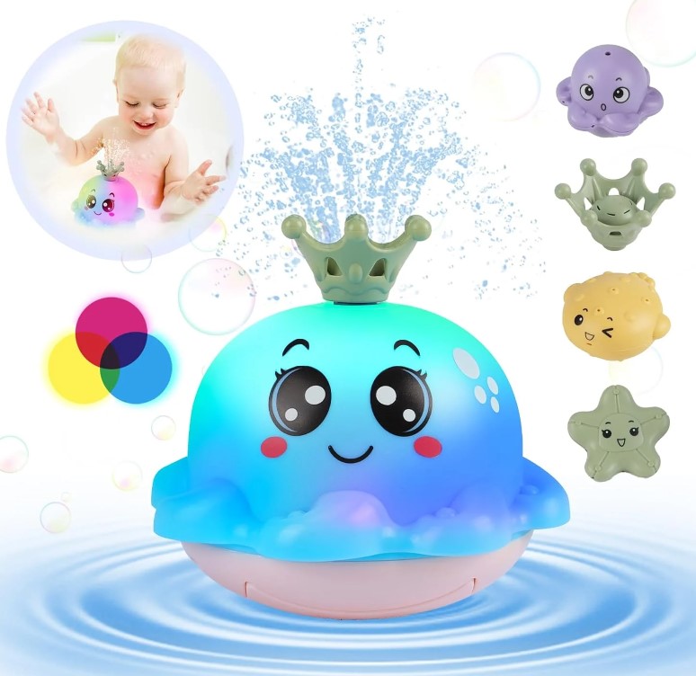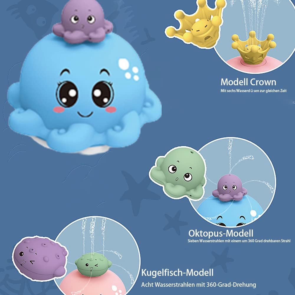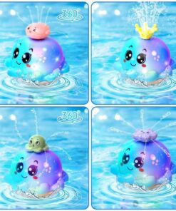 🐙 Jucărie interactivă: Plutește, luminează și stropește apă, captivând atenția copilului.