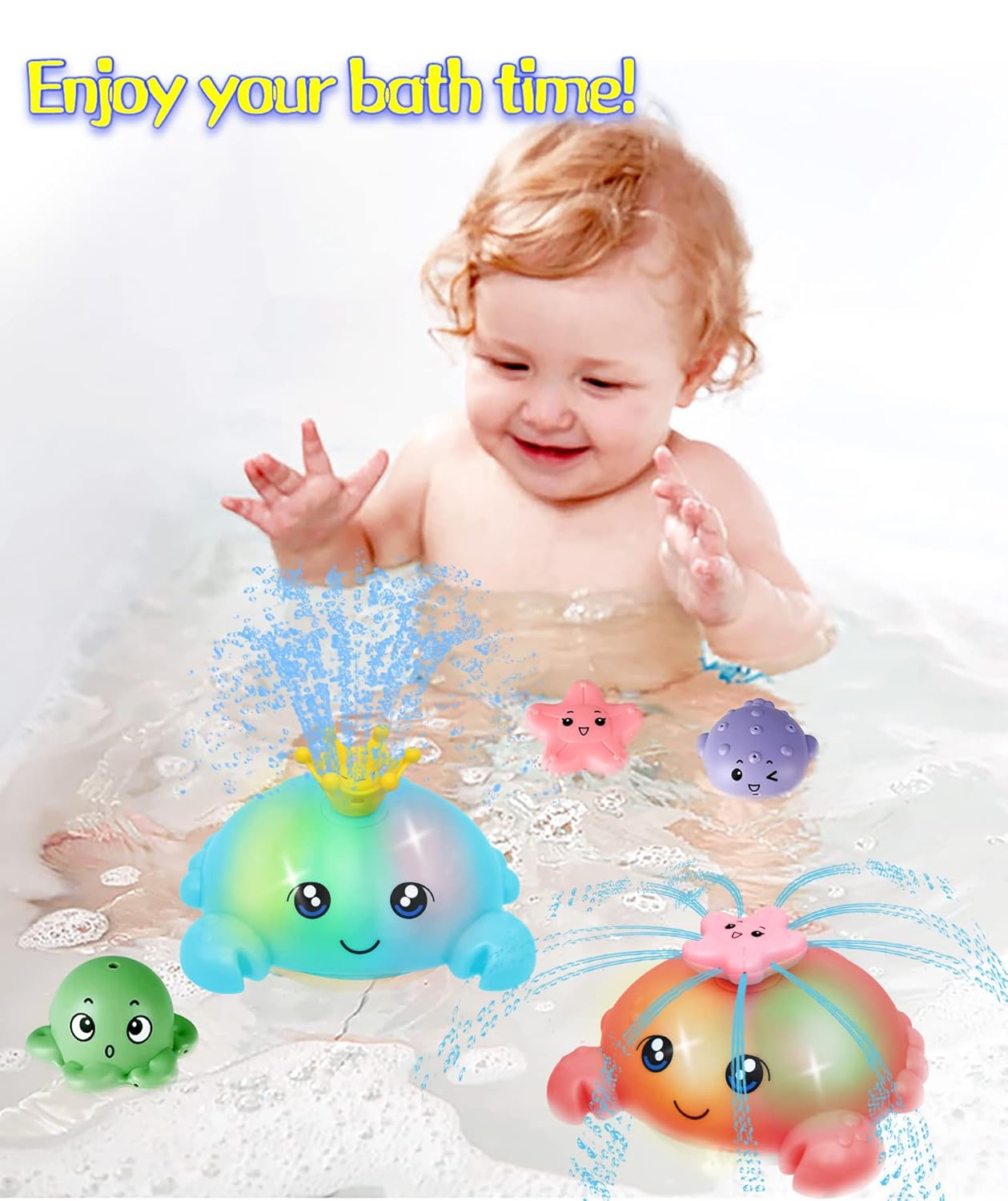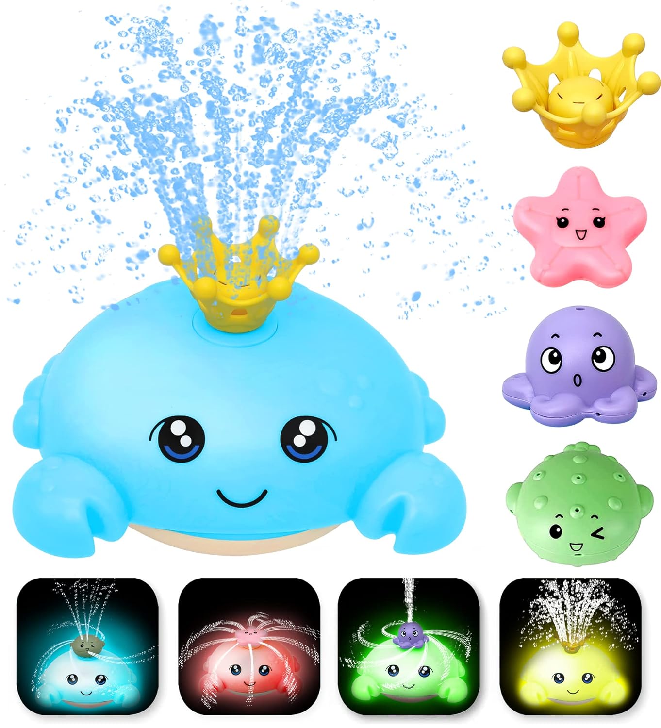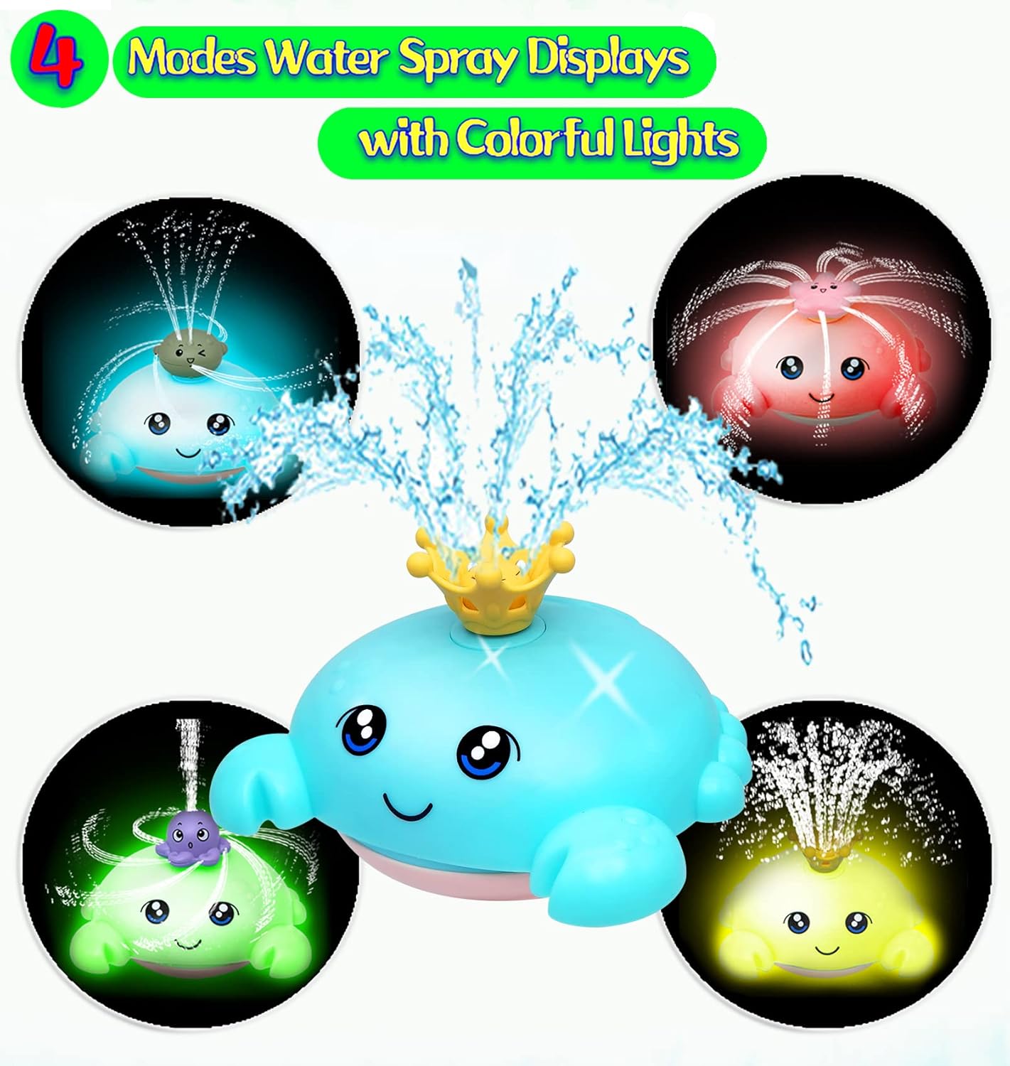 Transformă fiecare băiță într-o aventură plină de distracție cu crabul interactiv care luminează și stropește apă! Această jucărie adorabilă îi va încânta pe cei mici cu efectele sale luminoase și jeturile de apă variate, oferindu-le o experiență plină de veselie și explorare senzorială.
