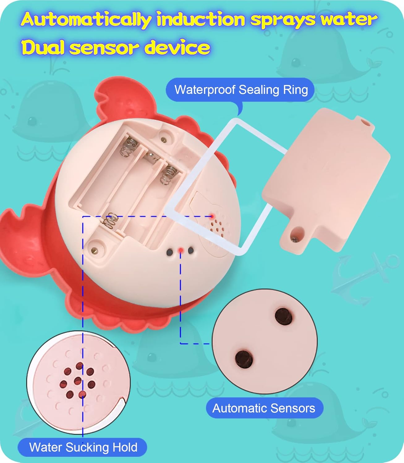 ✅ Activare automată la contactul cu apa – crabul începe să stropească și să lumineze singur, fără butoane complicate.
