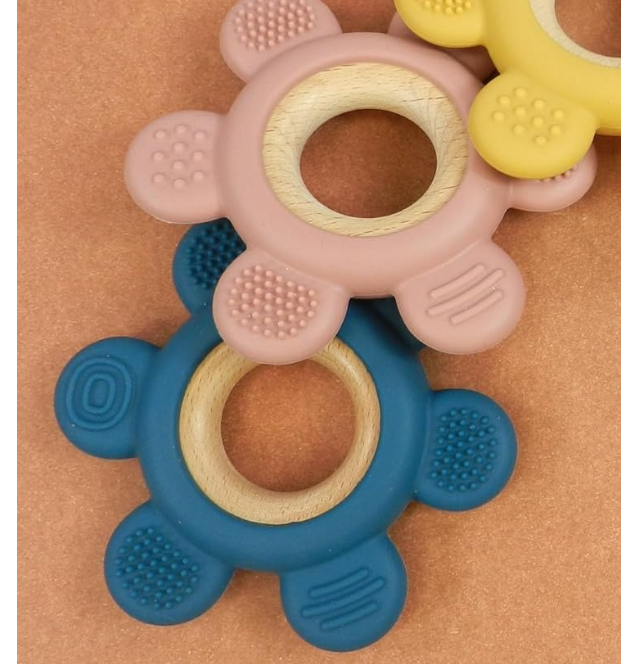 ✔️ Texturi variate – Cele 6 petale din silicon au suprafețe diferite pentru masarea delicată a gingiilor și stimularea dezvoltării senzoriale.
