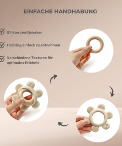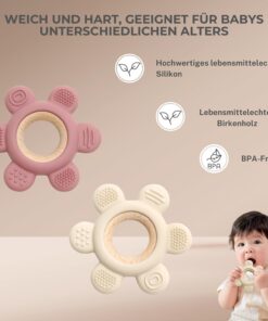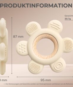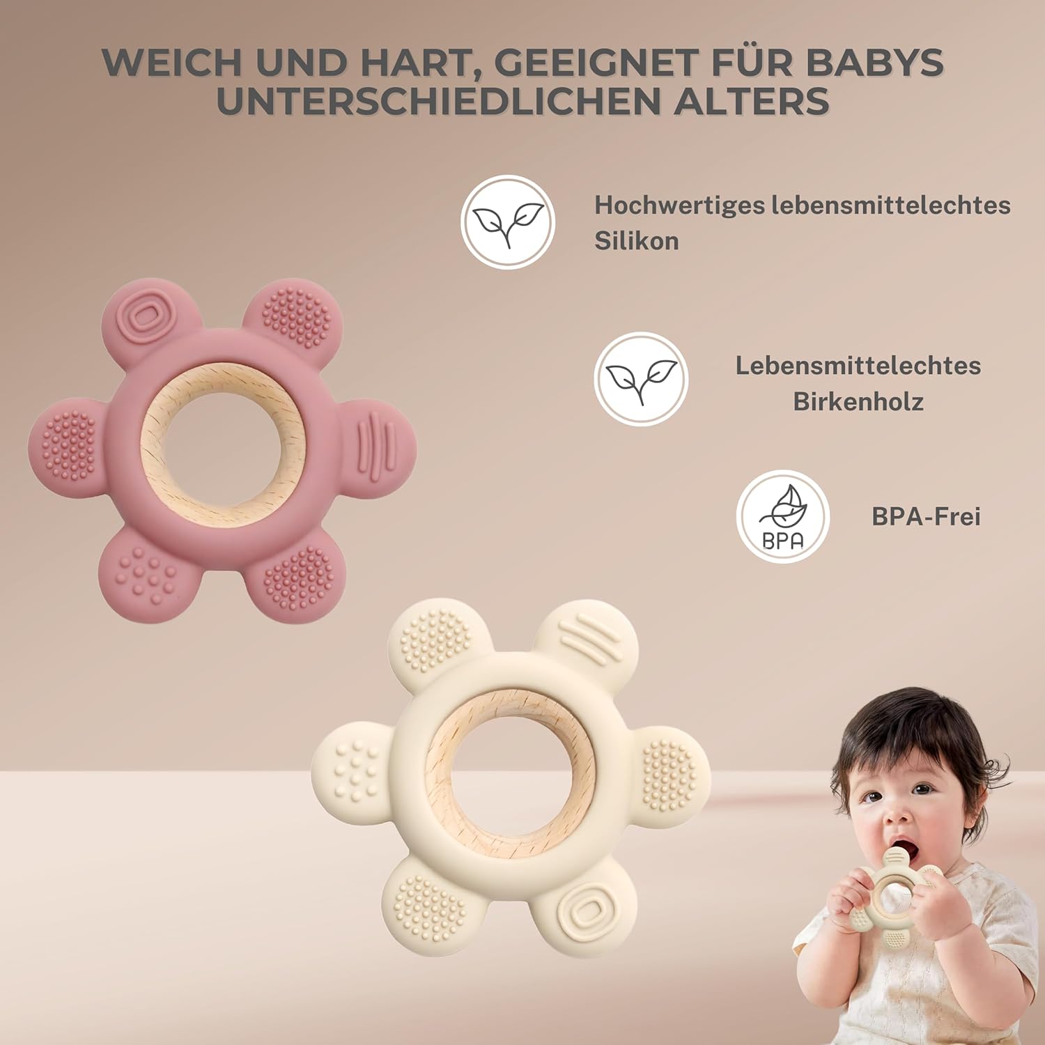 Această jucărie de dentiție este special concepută pentru bebelușii cu vârsta peste 6 luni, fiind o alegere ideală pentru calmarea gingiilor inflamate în perioada erupțiilor dentare. Cu un design atractiv sub formă de floare și o combinație plăcută între silicon moale și lemn natural, această jucărie oferă nu doar alinare, ci și stimulare tactilă și senzorială.
