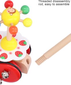 Jucăria de împins „Curcubeu” este realizată din lemn natural, vopsit cu culori pe bază de apă, non-toxice și sigure pentru cei mici. Este prevăzută cu roți solide din lemn, cu strat de cauciuc pentru aderență și protecția podelelor, precum și cu clopoței care scot sunete vesele la fiecare mișcare.