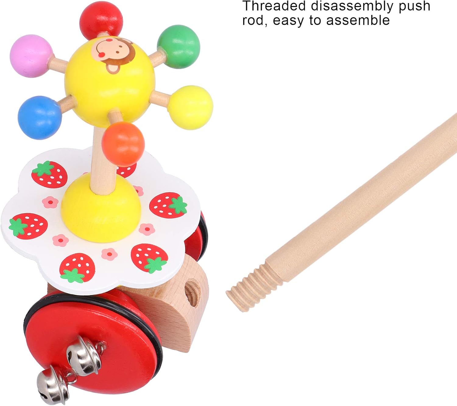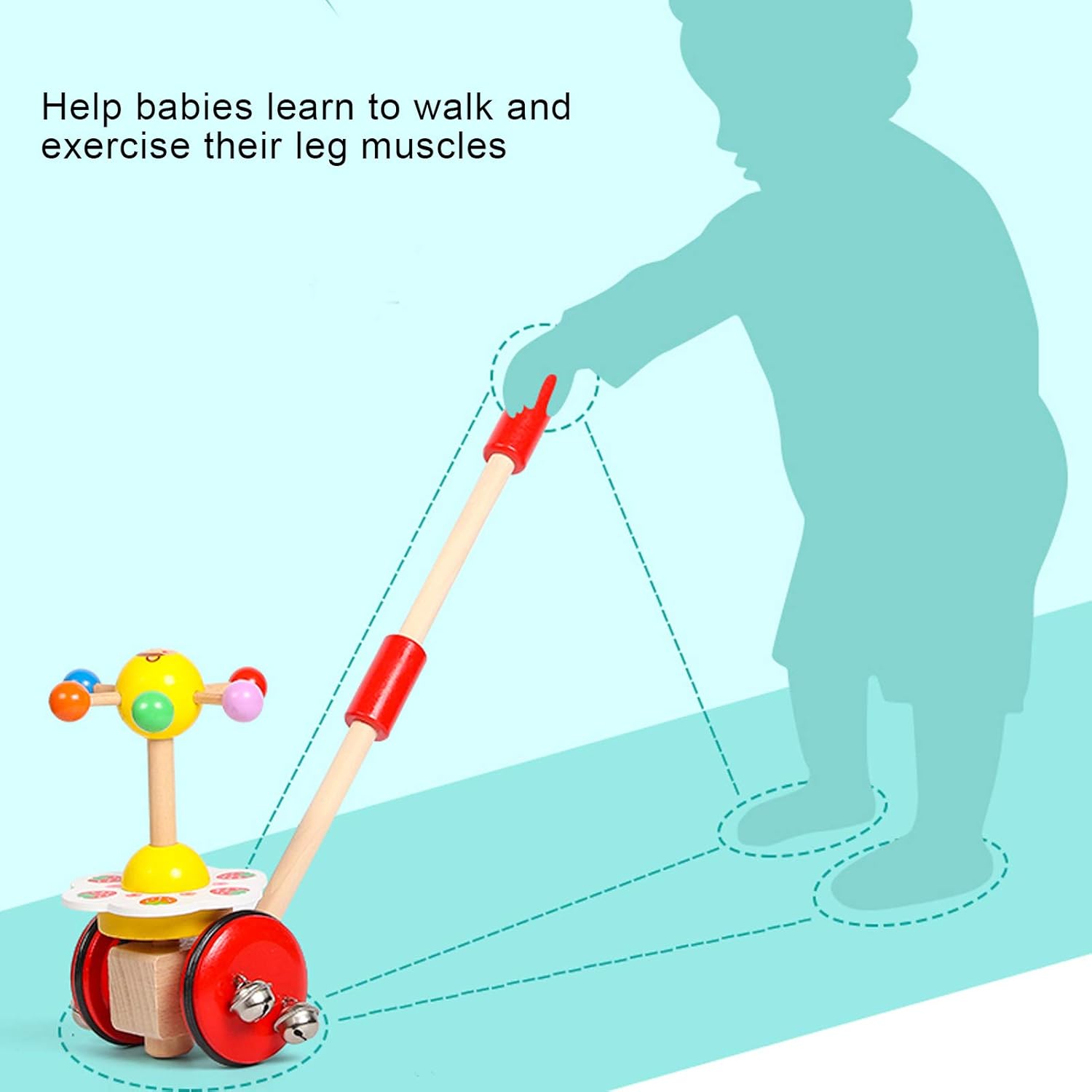 Copilul prinde mânerul și împinge jucăria pe podea. Pe măsură ce roțile se rotesc, clopoțeii scot sunete vesele, iar bilele colorate de pe partea superioară se mișcă, atrăgând atenția celui mic și motivându-l să continue mersul. Este ideală pentru a fi folosită în casă sau pe suprafețe netede, contribuind la exersarea mersului și la consumarea energiei într-un mod distractiv.