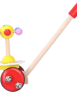 O jucărie de împins veselă și sigură, ideală pentru primii pași ai copilului. Realizată din lemn natural, cu culori non-toxice și clopoței care sună la fiecare mișcare, stimulează mersul, echilibrul și coordonarea. Recomandată de la 18 luni, este alegerea perfectă pentru părinții care caută jucării educative și durabile din lemn.