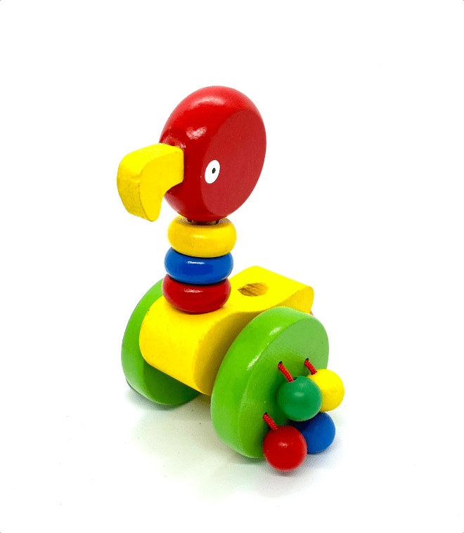 Jucarie de impins din lemn cu figurine – Papagal