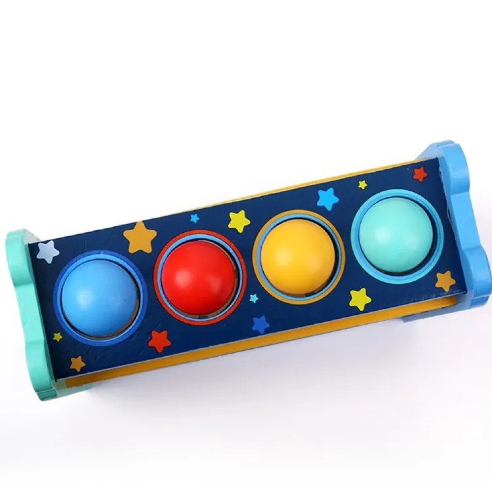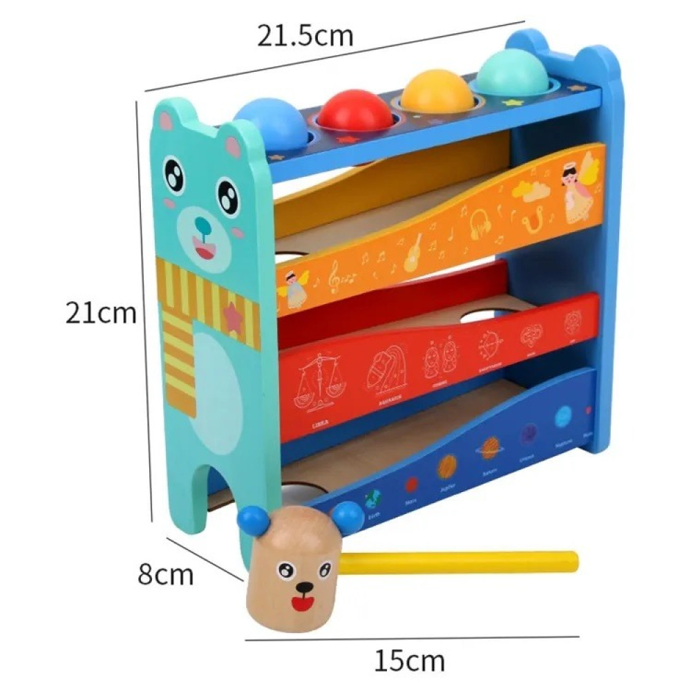 Jucarie din lemn-Banc cu Pista, Bile si Ciocanel, 1 an+