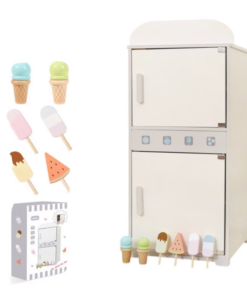 Copilul poate deschide frigiderul și congelatorul pentru a „păstra” alimentele de joacă, poate organiza o bucătărie completă sau poate simula un magazin. Accesoriile incluse – înghețate și fructe din lemn – pot fi folosite pentru a crea scenarii de joacă diverse, dezvoltând abilitățile sociale și vocabularul copiilor.