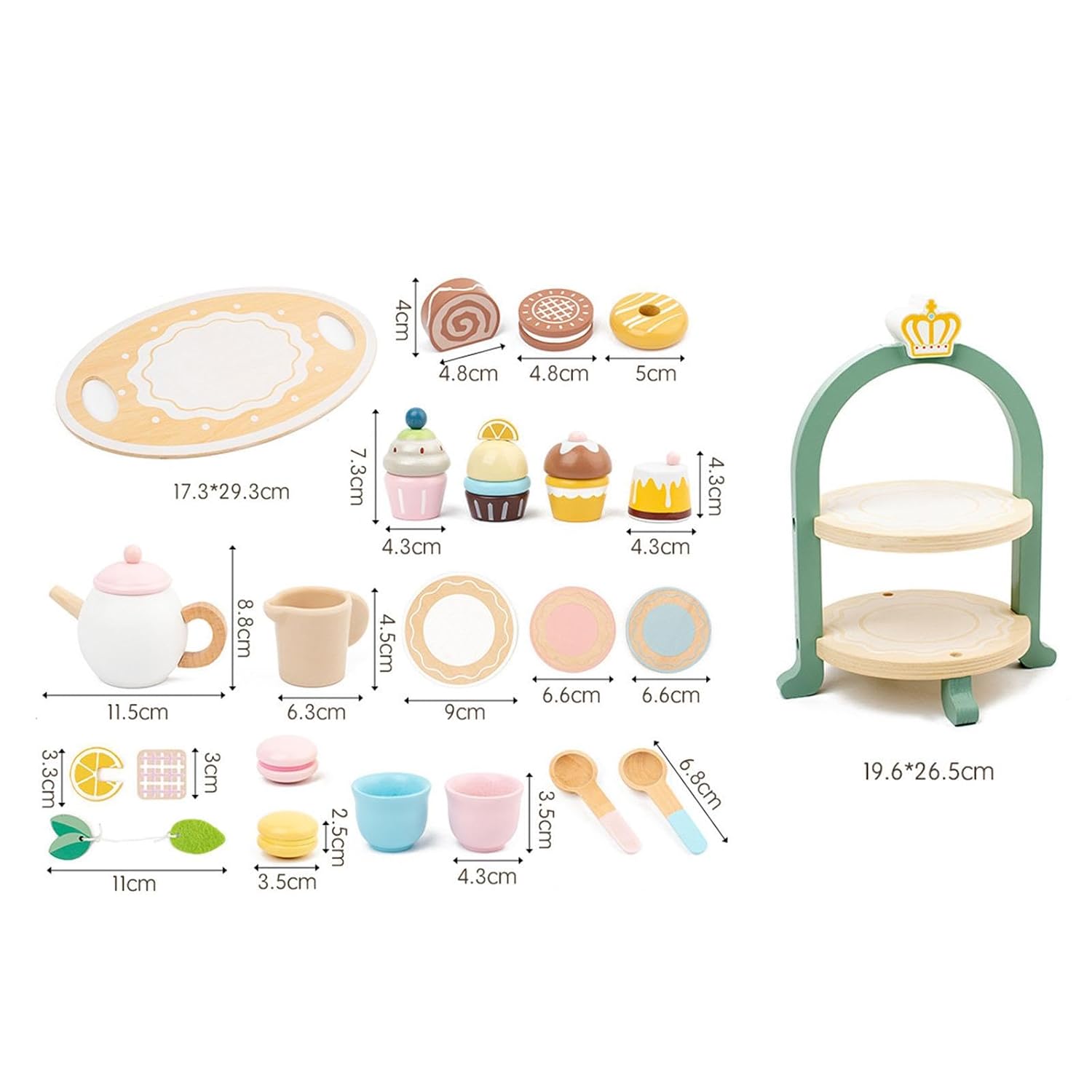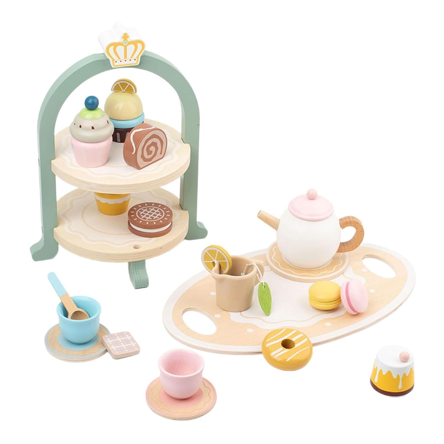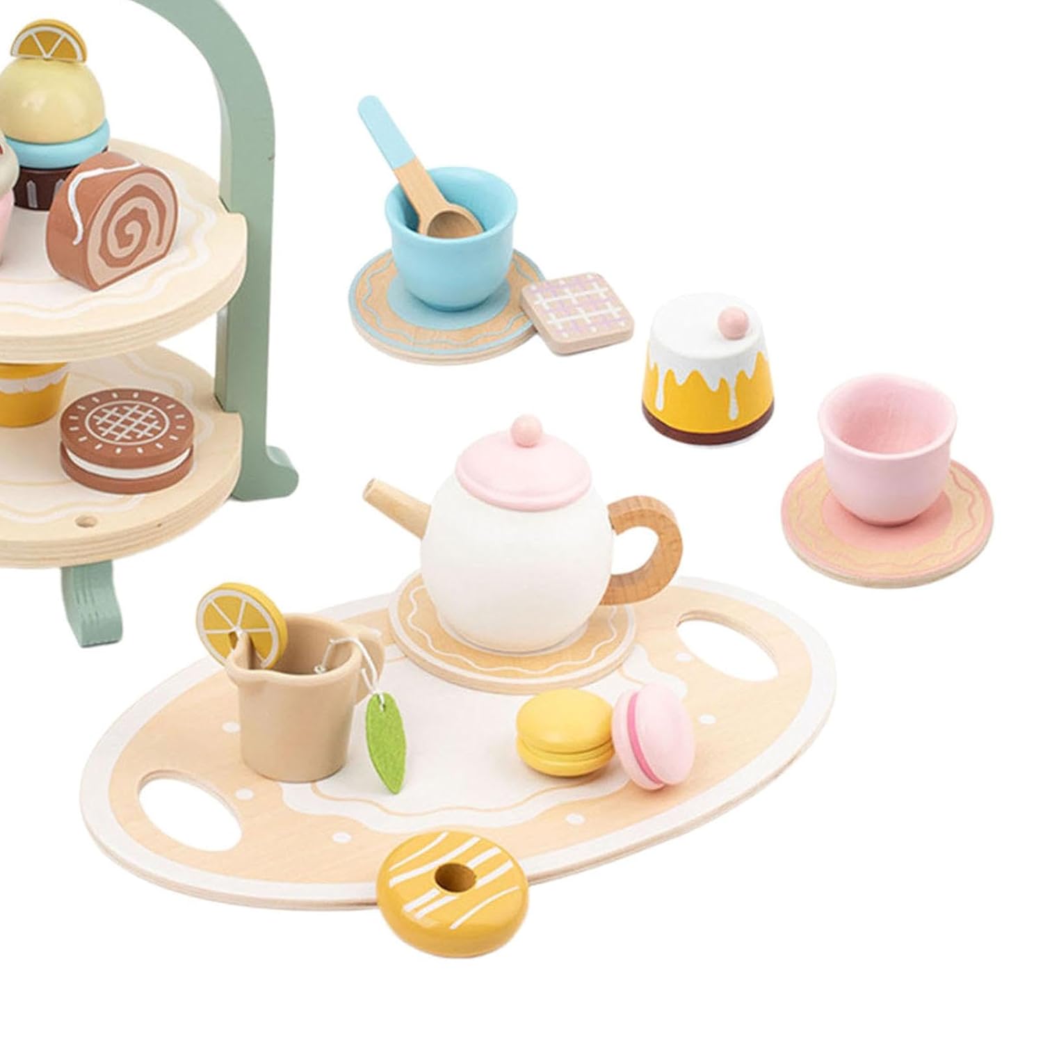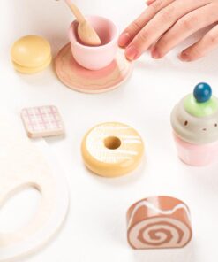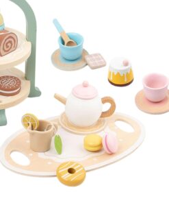Transformă joaca de zi cu zi într-un moment elegant și educativ cu acest set de ceai din lemn, format din 23 de piese. Conceput special pentru copiii de peste 3 ani, acest set adorabil include tot ce este necesar pentru o sesiune de ceai reușită – ceainic, cești, prăjituri, macarons și un suport elegant pe două niveluri. Ideal pentru jocuri de rol, socializare și dezvoltarea imaginației într-un cadru calm, estetic și sigur.