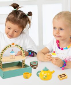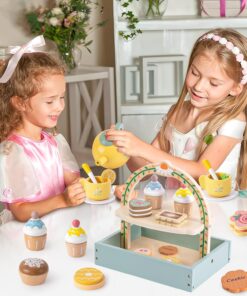 Realizat din lemn de calitate și vopsit cu culori delicate pe bază de apă, setul recreează experiența unei autentice ceremonii a ceaiului. Copiii pot pregăti ceaiul, servi prăjituri și invita prietenii sau părinții la o sesiune de joacă plină de imaginație.