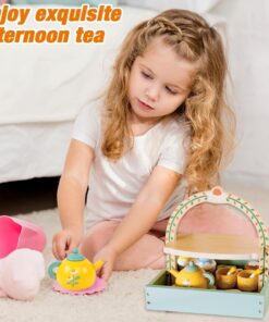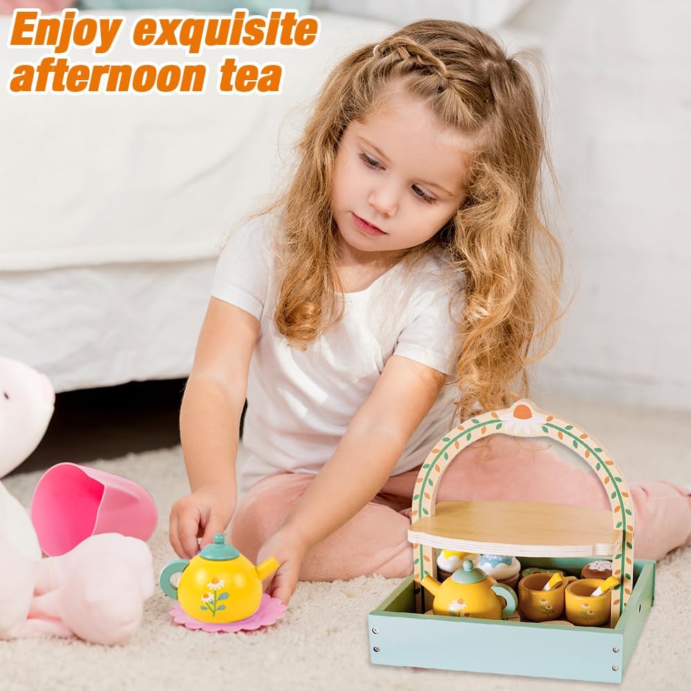 Jucărie din lemn – Set servirea ceaiului, 14 piese, joc de rol Montessori pentru copii, 3 ani+