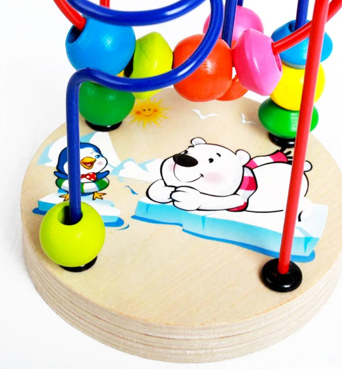 Jucaria motrica tip labirint 3d sau circuit cu margele din lemn este printre primele jucarii de tip Montessori care pot fi oferite celor mici. Ea are dimensiuni potrivite pentru manutele bebelusilor si este vopsita in culori vesele, fiind ideala pentru exersarea motricitatii fine a bebelusilor.