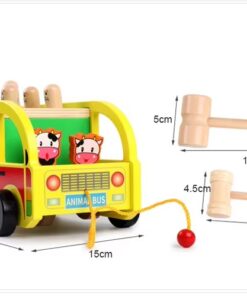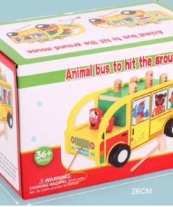 Autobuzul Animalelor este o jucărie educativă din lemn de tip Montessori, concepută pentru a stimula coordonarea, atenția și motricitatea fină a copiilor. Printr-o activitate amuzantă și interactivă, cei mici trebuie să lovească ușor cu ciocănelul figurinele din lemn care apar și dispar prin orificiile autobuzului.