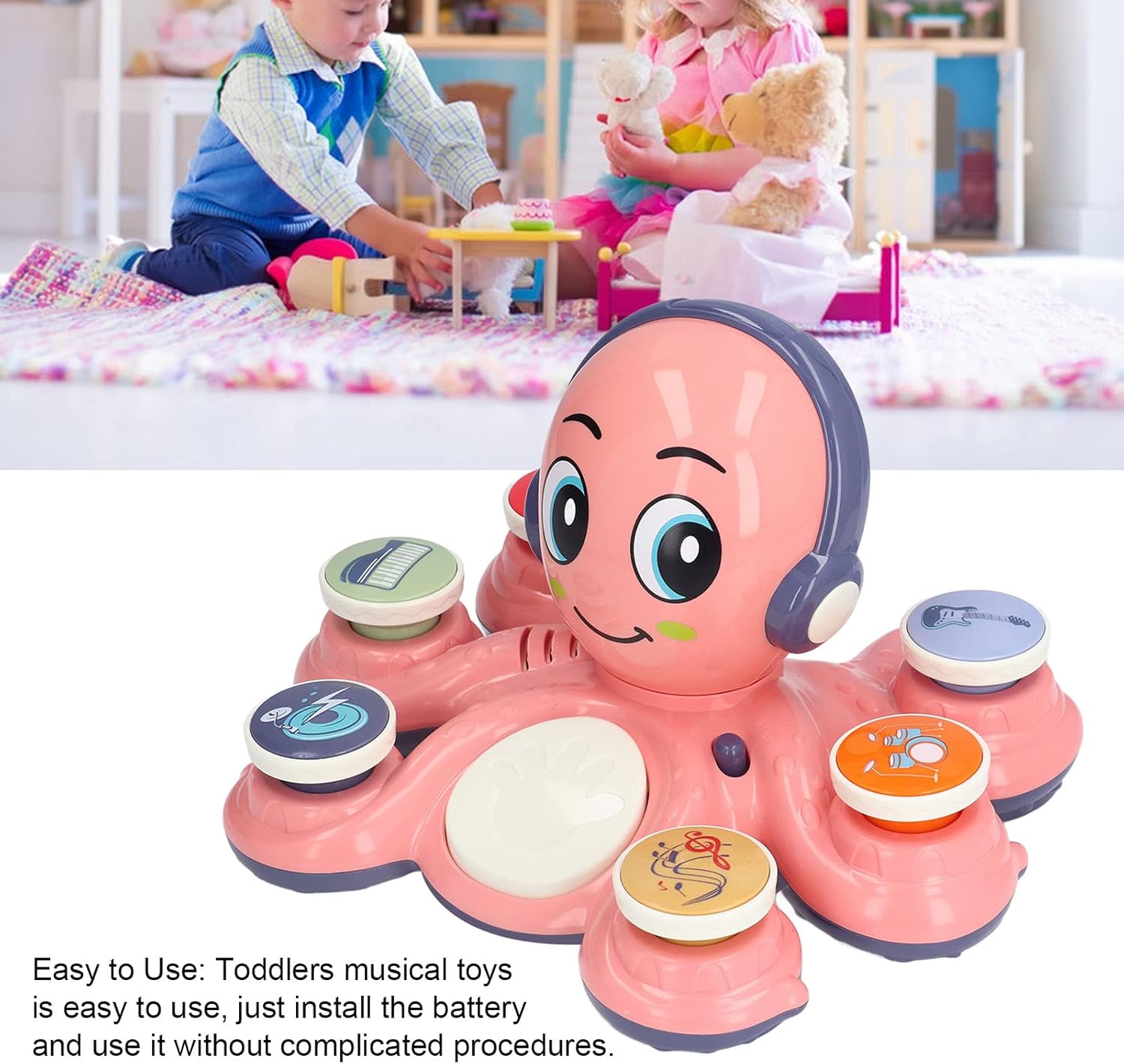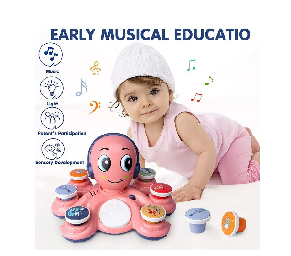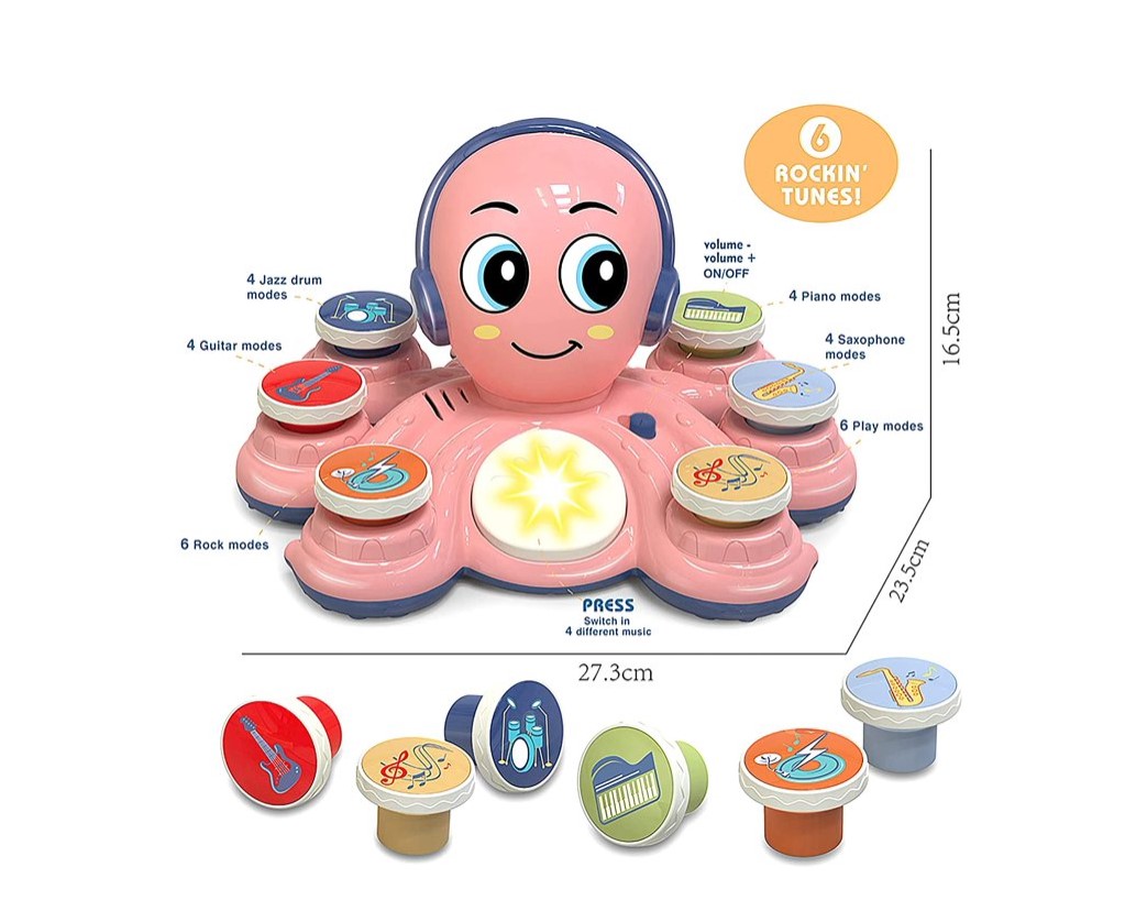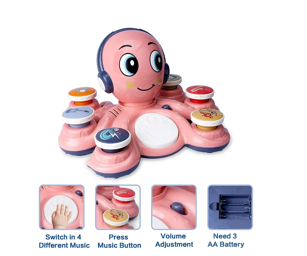 Un prieten vesel și muzical pentru micii artiști! Caracatița roz aduce distracție și învățare în fiecare zi.
