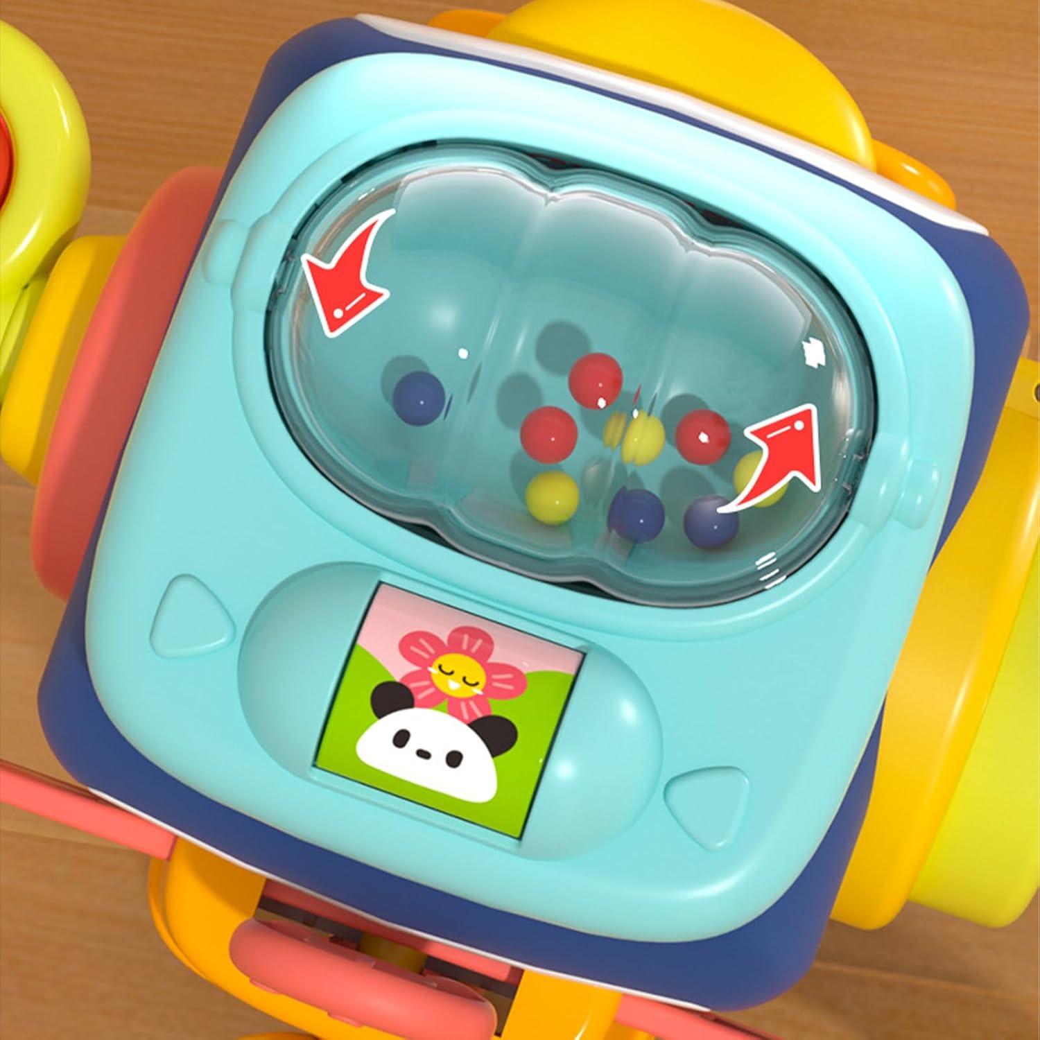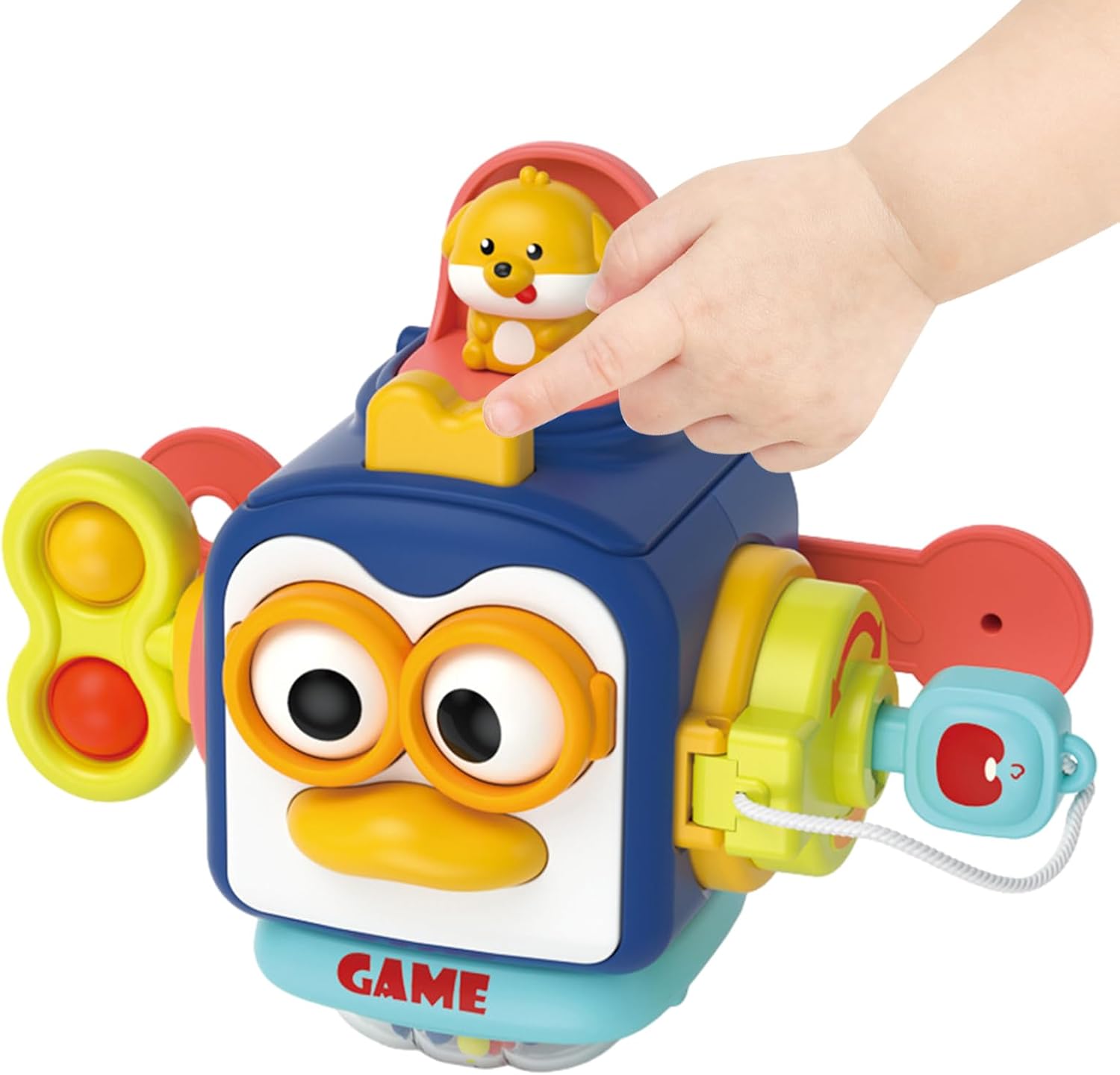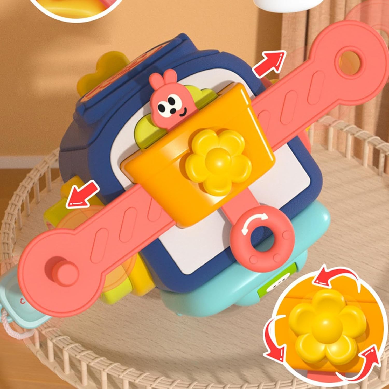Aceasta jucarie educativa si senzoriala cu 6 in 1 activitati este perfecta pentru exersarea abilitatilor motorii fine, auditive, vizuale si tactile ale bebelusilor de 12 luni.