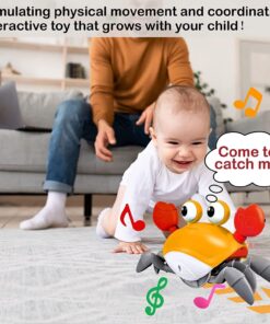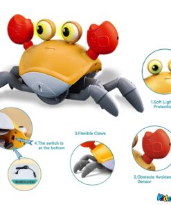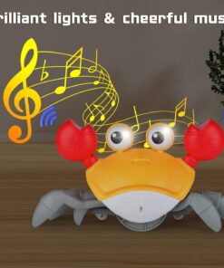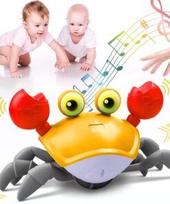 Un prieten de joacă plin de energie și culoare, crab-ul muzical îi va fascina pe cei mici prin mișcările sale amuzante, luminile strălucitoare și melodiile vesele. Conceput cu senzor inteligent de evitare a obstacolelor, crab-ul se mișcă singur prin cameră, stimulând copilul să se târască, să îl urmărească și să interacționeze activ cu el.