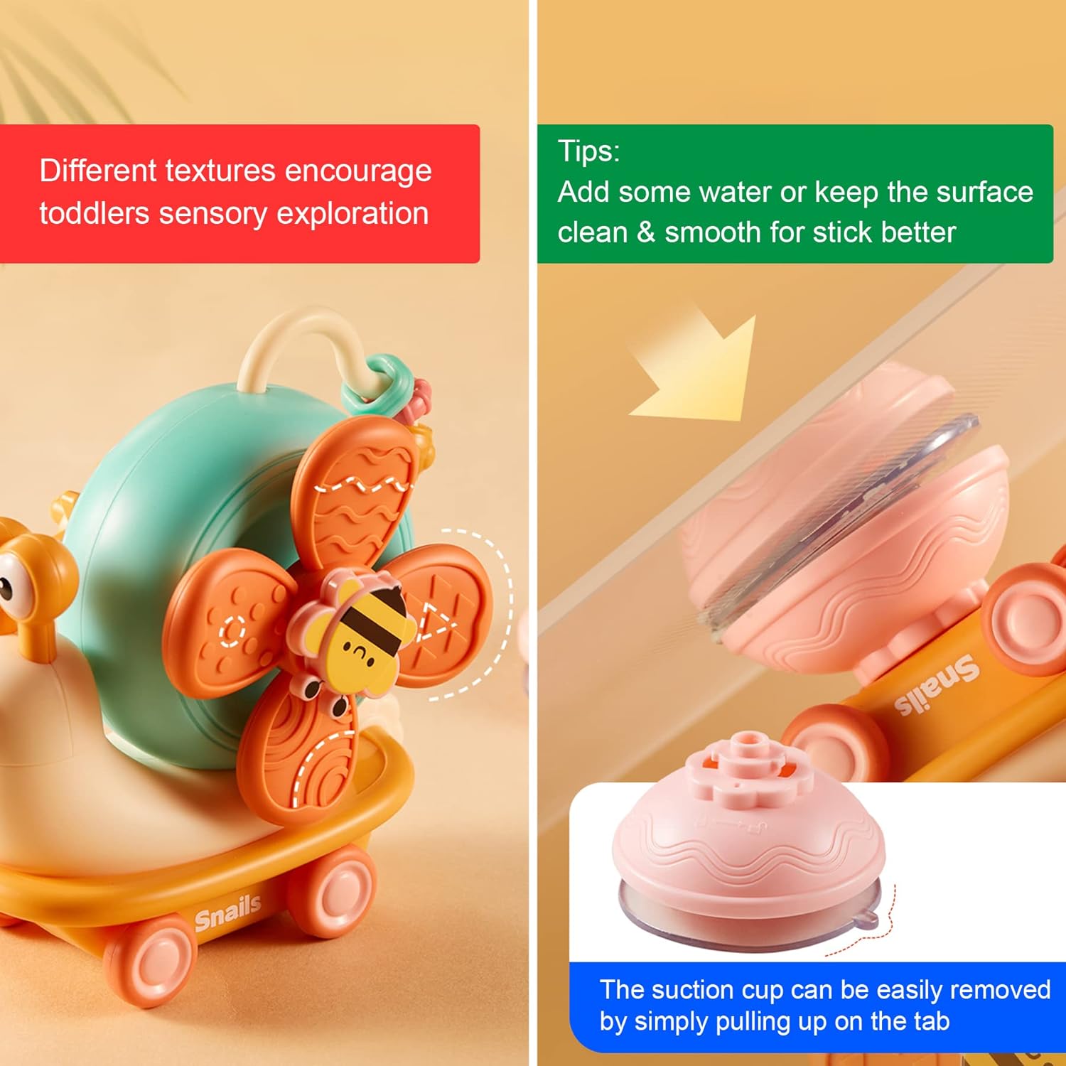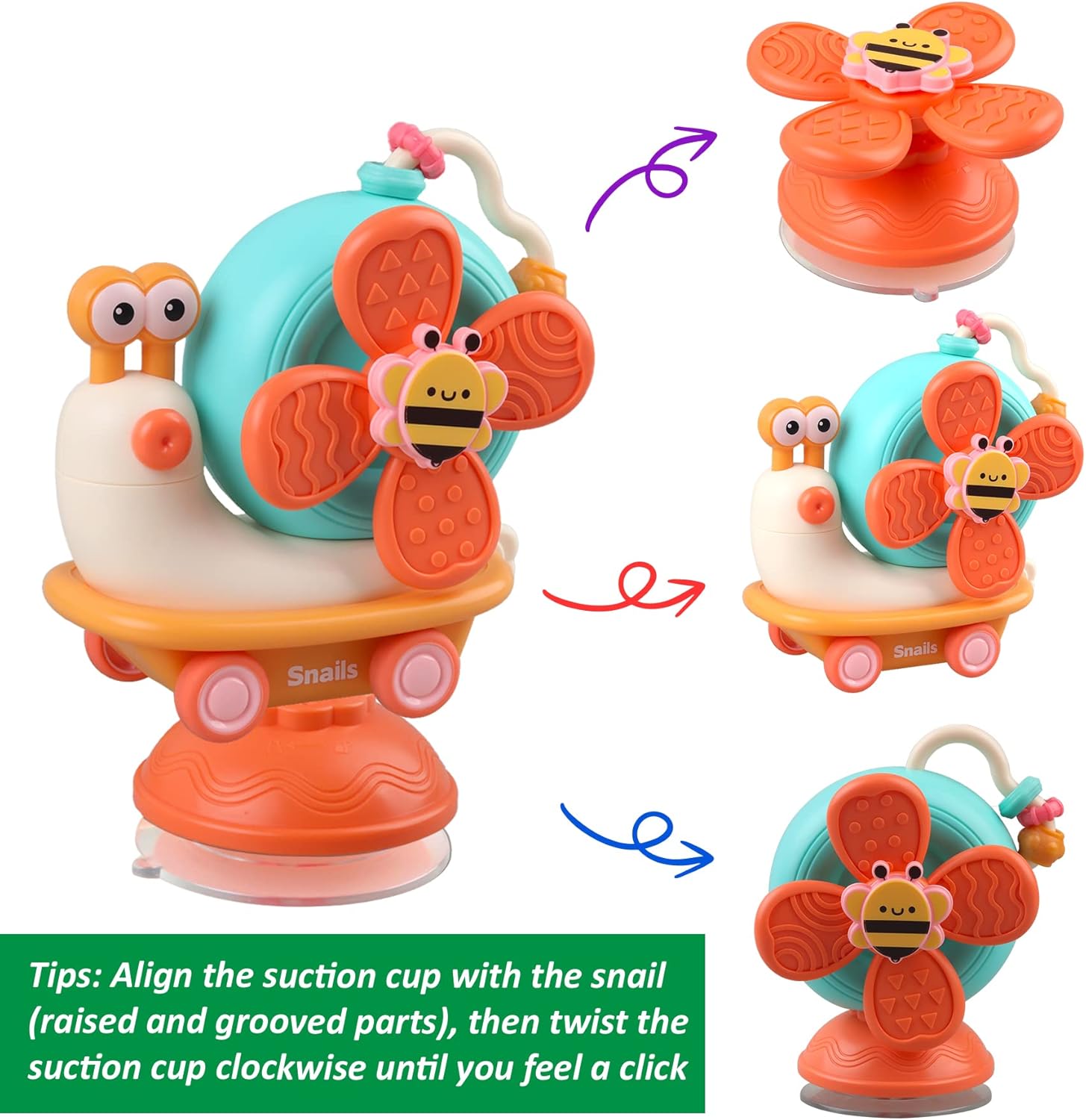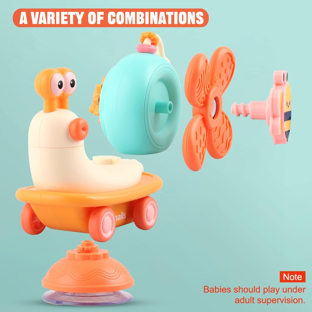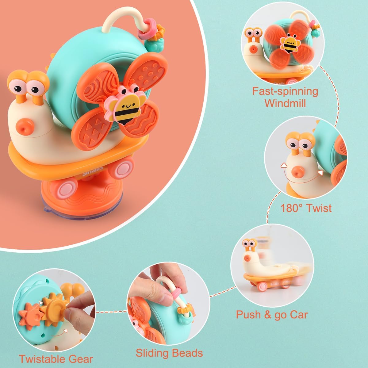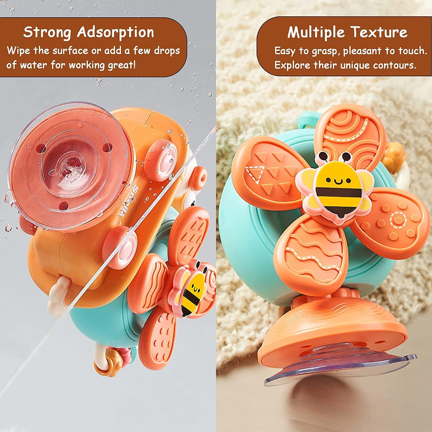 Aceasta jucarie senzoriala si motrica este perfecta pentru a fi lipita pe scaunul de masa a bebelusului tau. Ea este o jucarie grozava pentru copiii care tocmai invata sa exploreze lumea.
