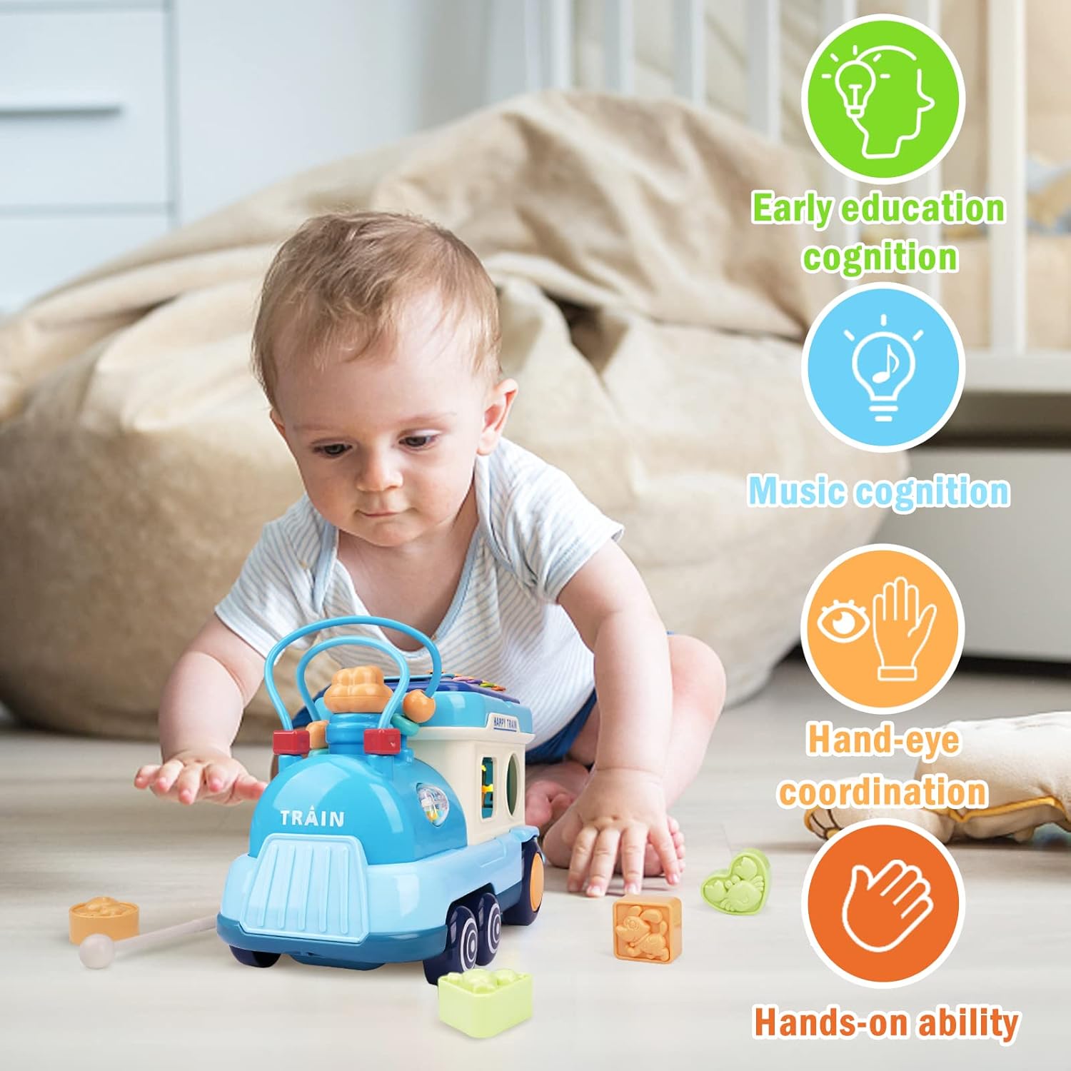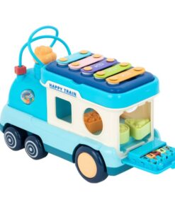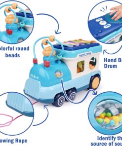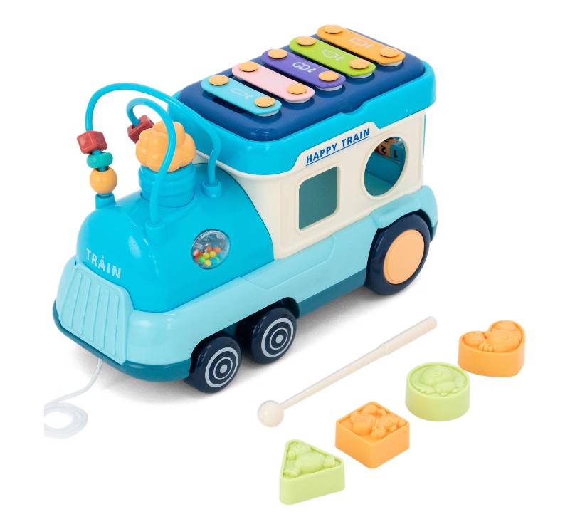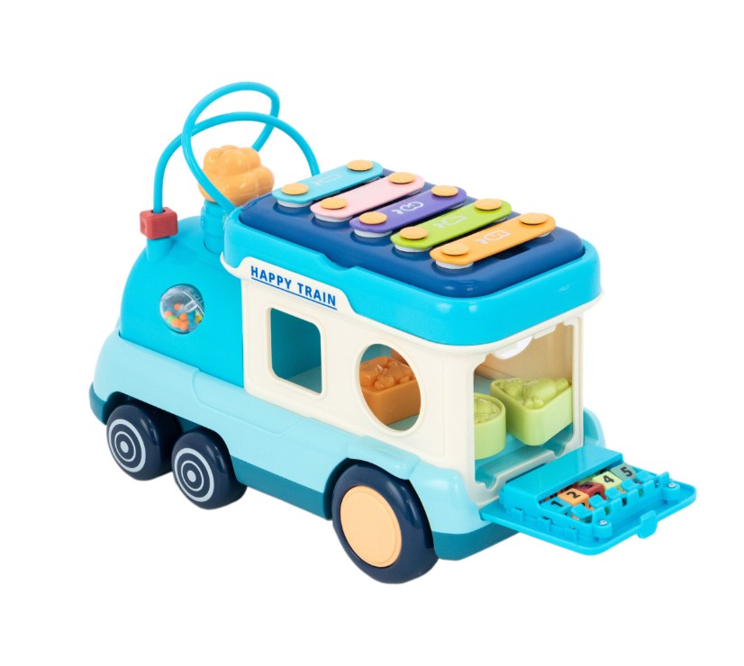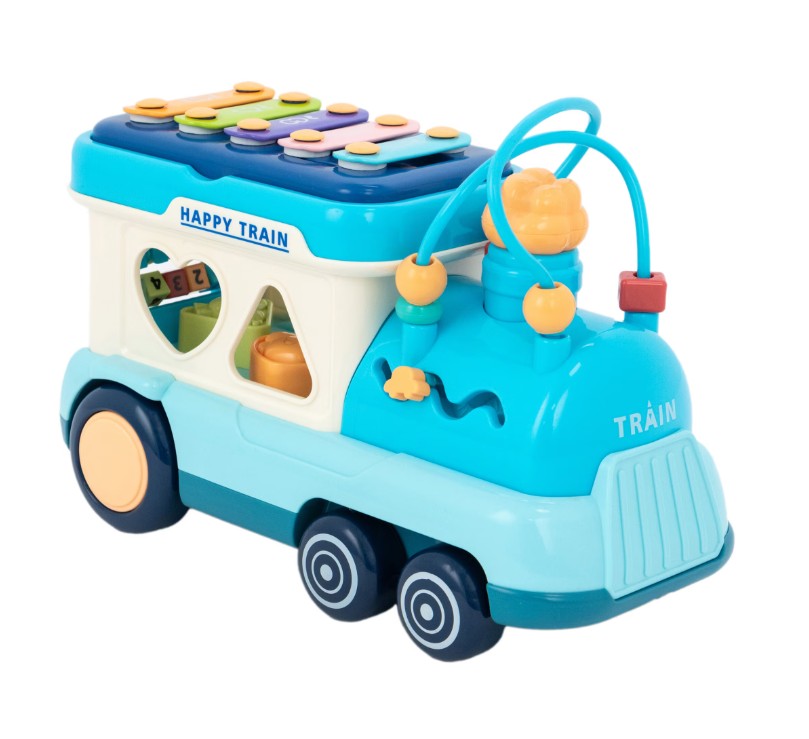 Trenulețul interactiv albastru este o jucărie educativă și distractivă, concepută pentru copiii de peste 18 luni. Cu un design vesel și colorat, trenulețul îmbină mai multe activități care stimulează dezvoltarea motrică, cognitivă și senzorială.