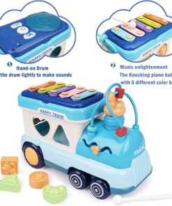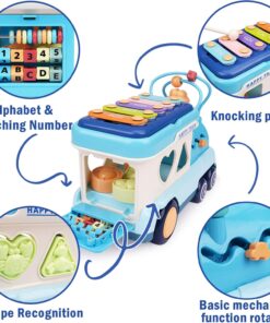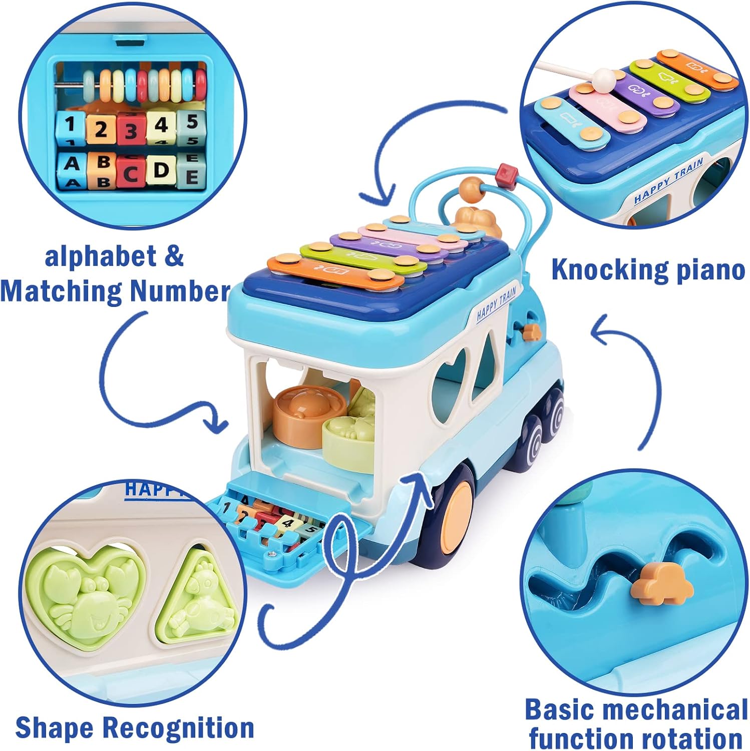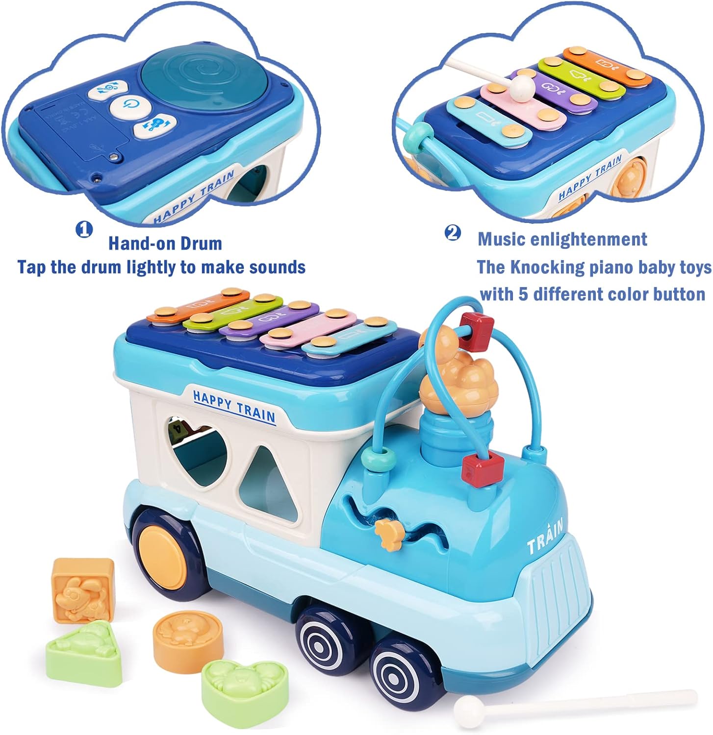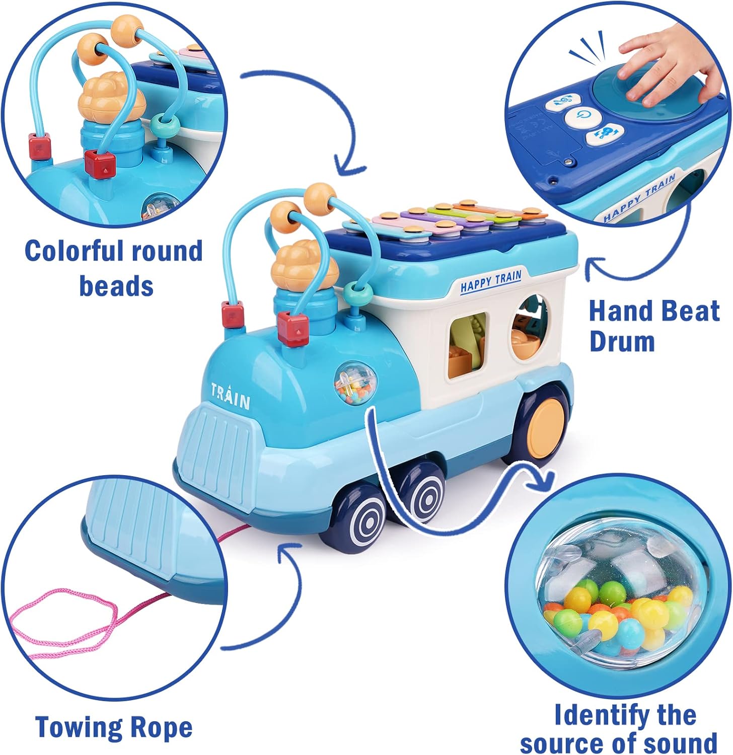 Trenulețul interactiv albastru este o jucărie educativă și distractivă, concepută pentru copiii de peste 18 luni. Cu un design vesel și colorat, trenulețul îmbină mai multe activități care stimulează dezvoltarea motrică, cognitivă și senzorială.