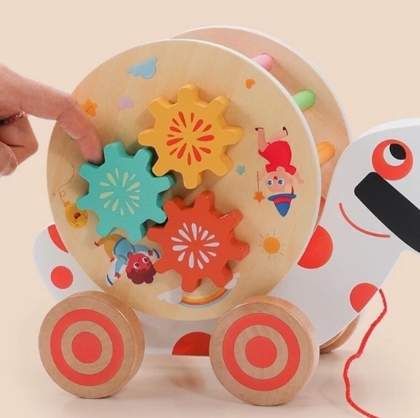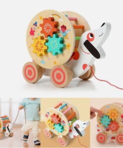 Copilul poate trage jucăria după el folosind șnurul, dezvoltându-și echilibrul și coordonarea. În același timp, poate explora activitățile educative de pe laterale: rotirea roților colorate, învârtirea acelor ceasului sau mutarea biluțelor prin labirint. Această combinație de mișcare și joacă educativă transformă jucăria într-un prieten de nădejde al copilului, acasă sau la plimbare.