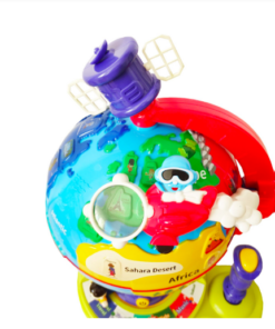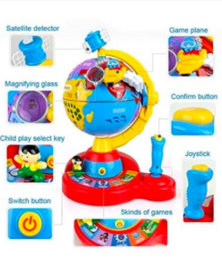 Jucăria interactivă Globul Pământesc este un instrument educativ complex conceput pentru copiii de 5 ani și peste, care îmbină explorarea geografică cu jocuri logice și exerciții de orientare. Globul include un avion funcțional care se poate deplasa în jurul lumii, un joystick pentru control, butoane și moduri de joc care transformă învățarea într-o experiență practică și captivantă.